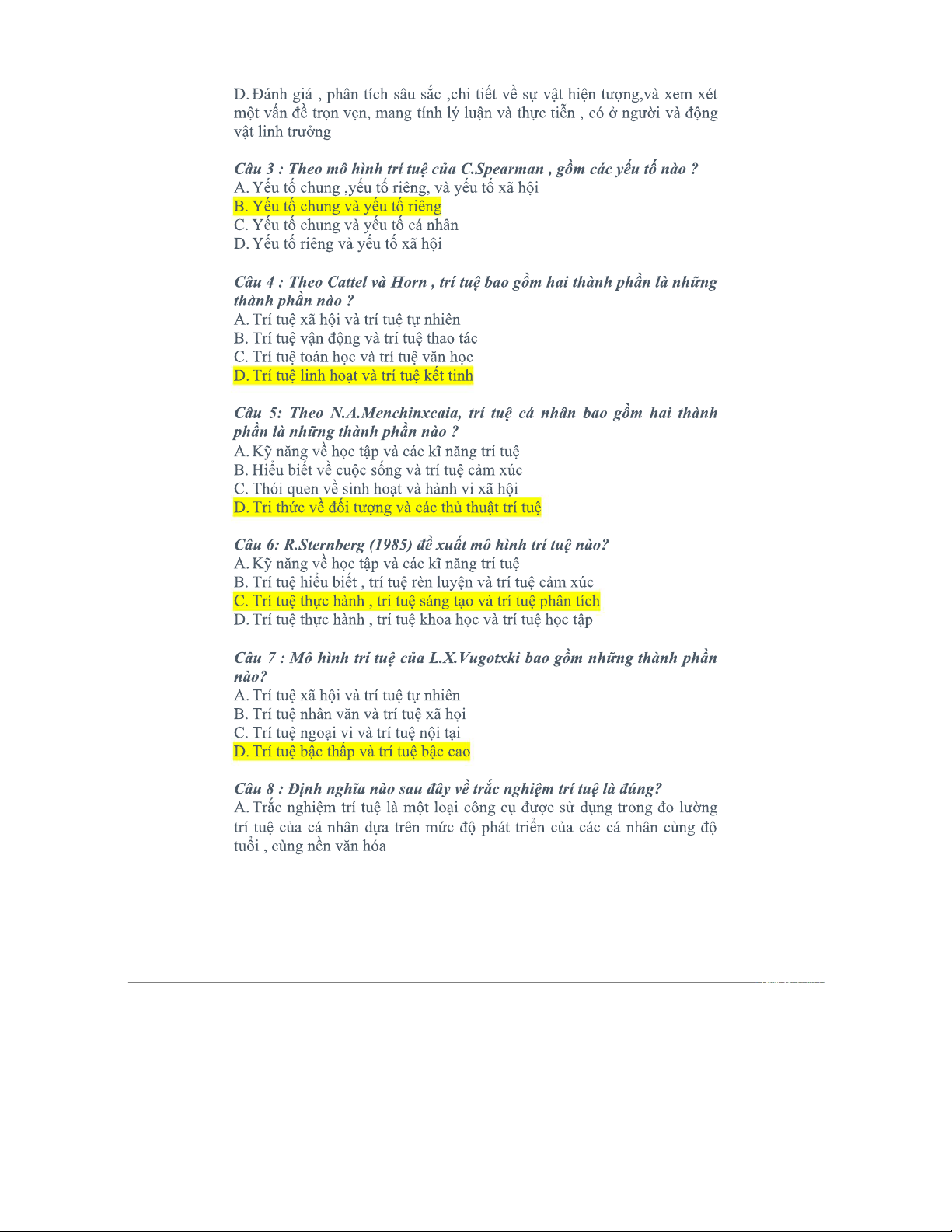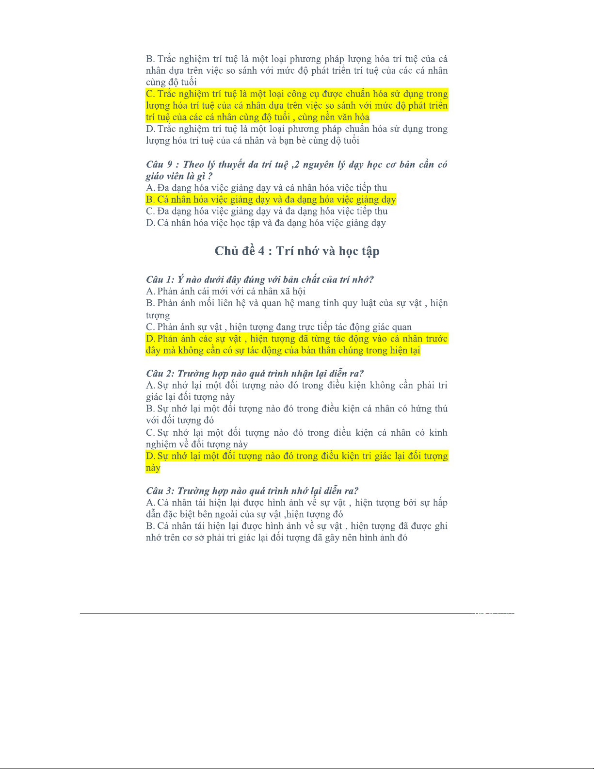 TRẮC NGHIỆM TÂM LÍ HỌC GIÁO DỤC - TÀI LIỆU ÔN TẬP CHO KÌ THI