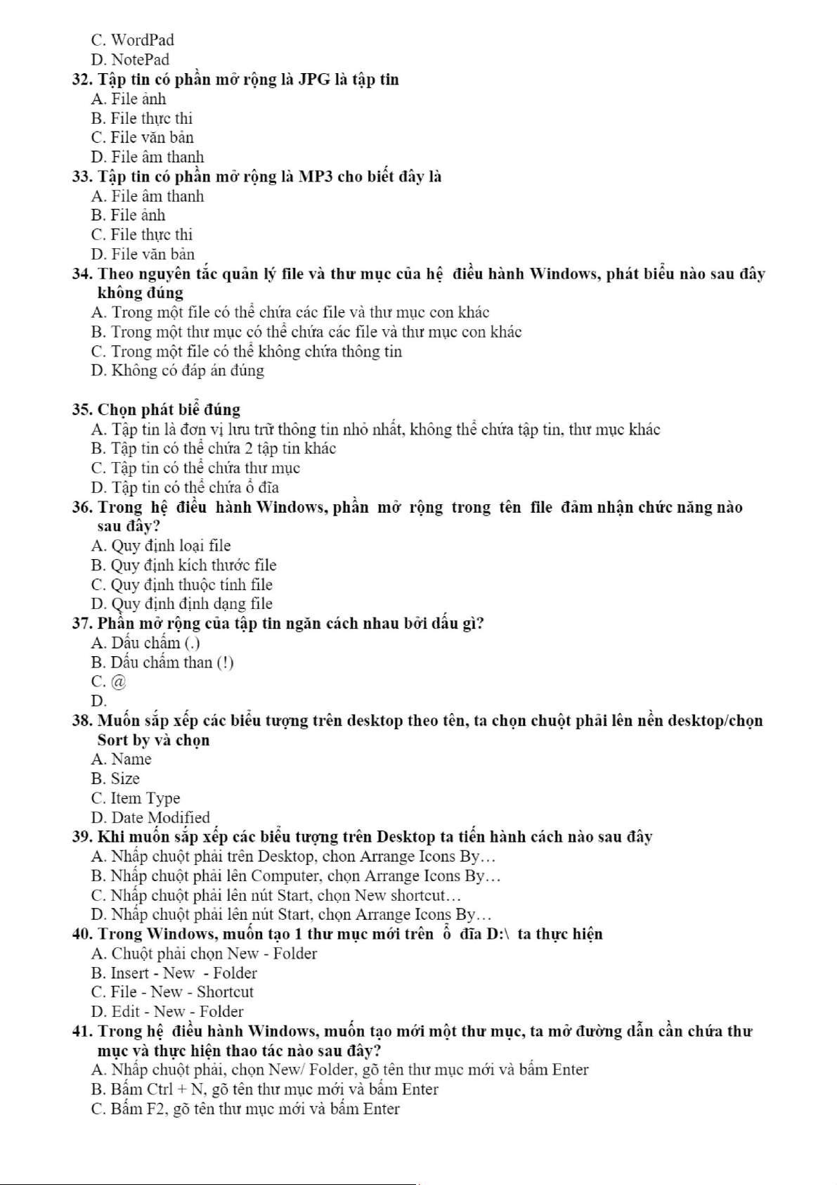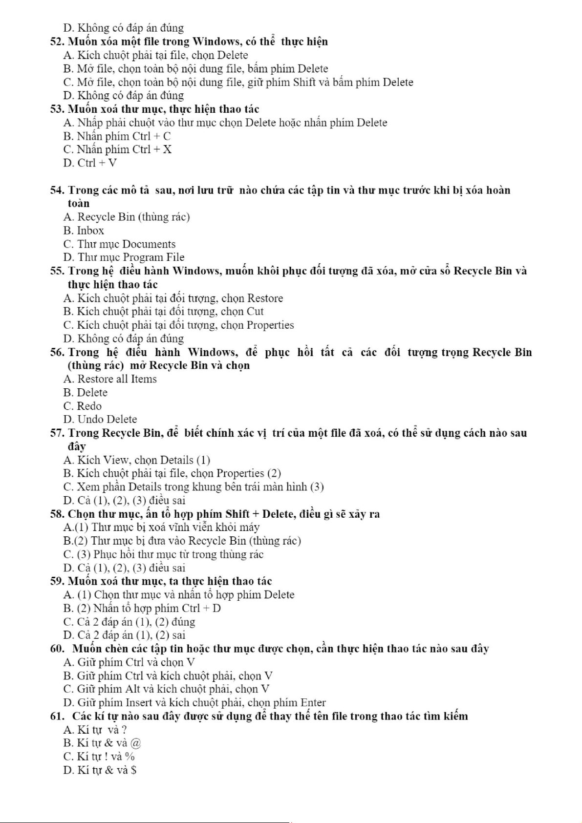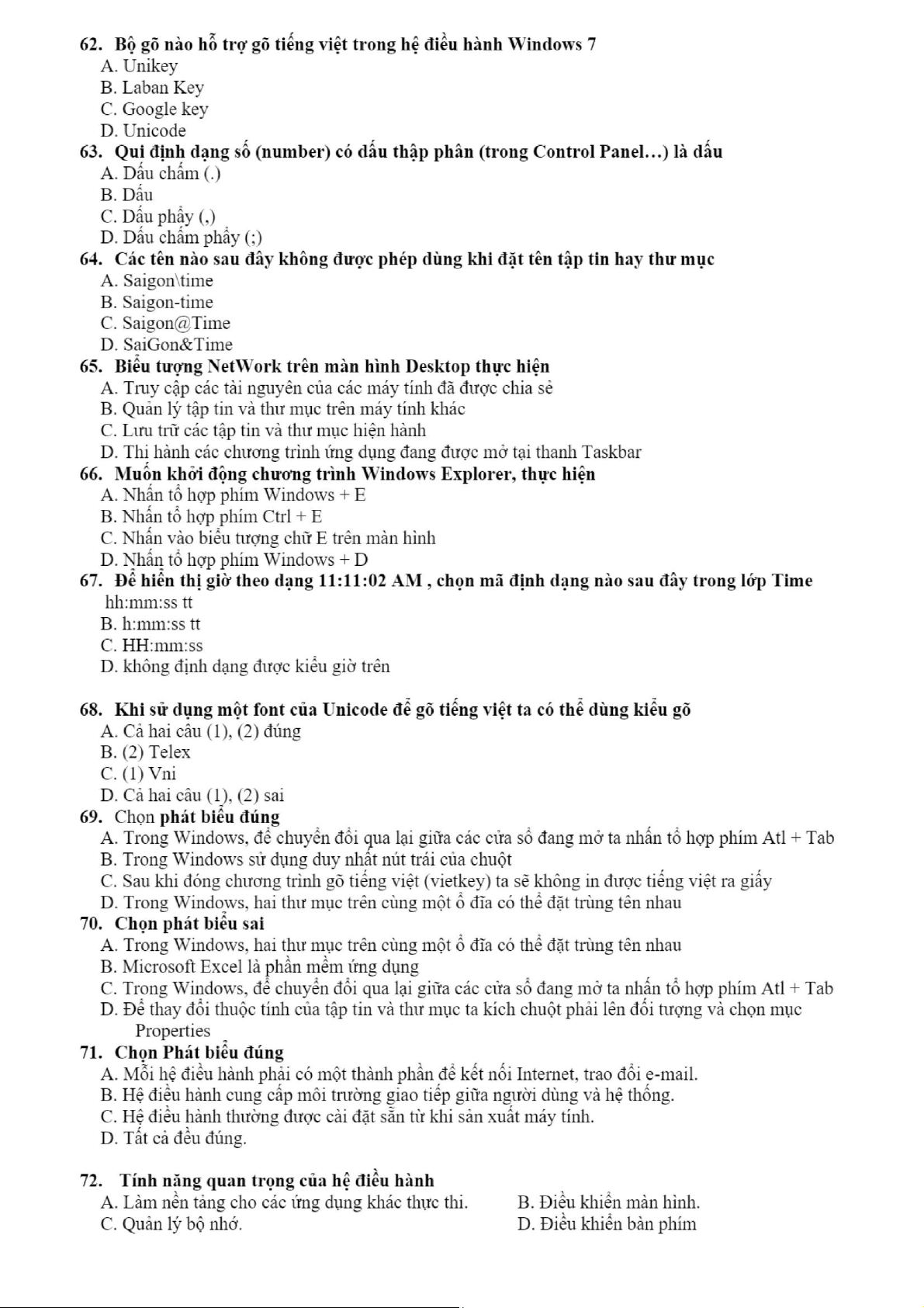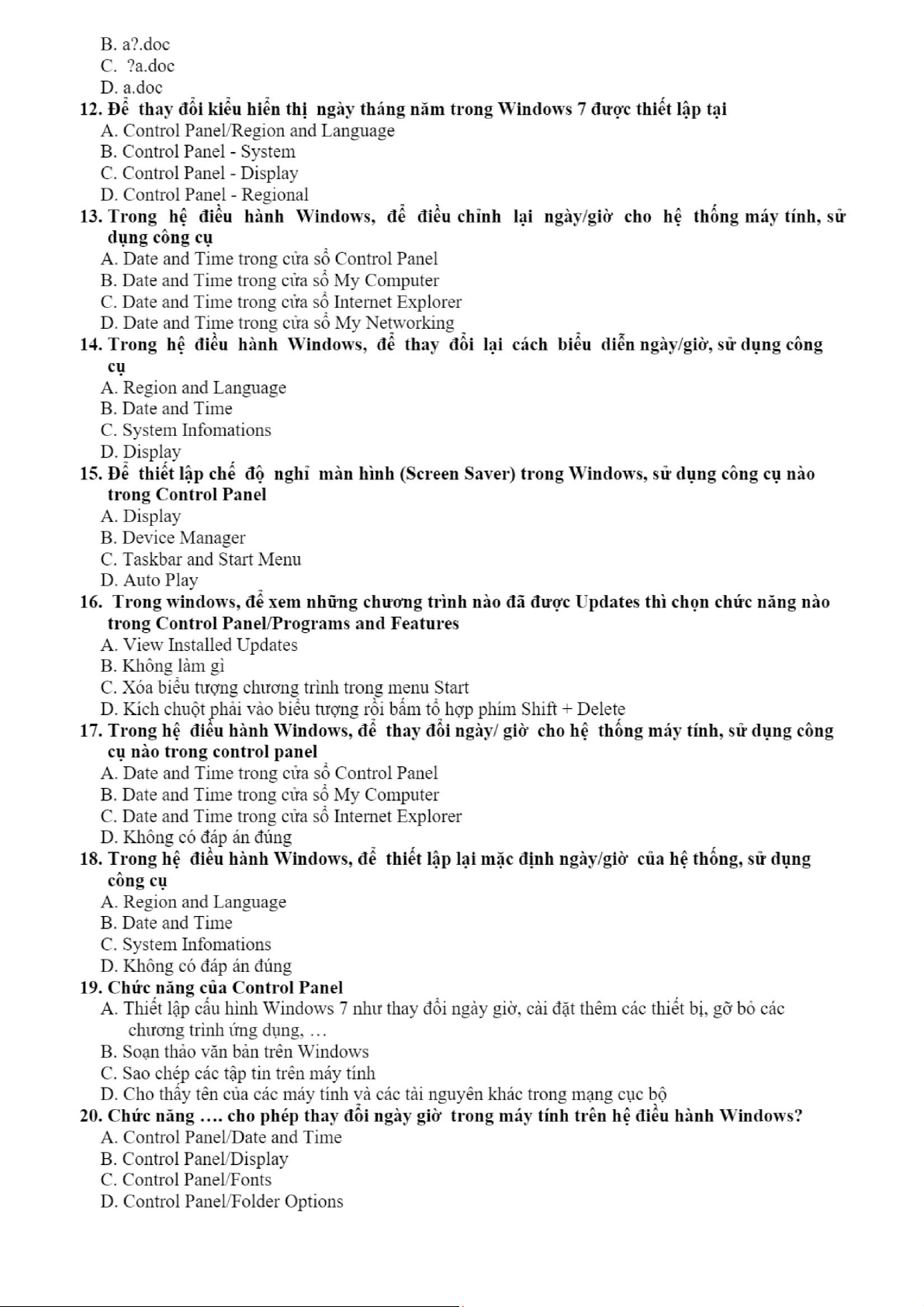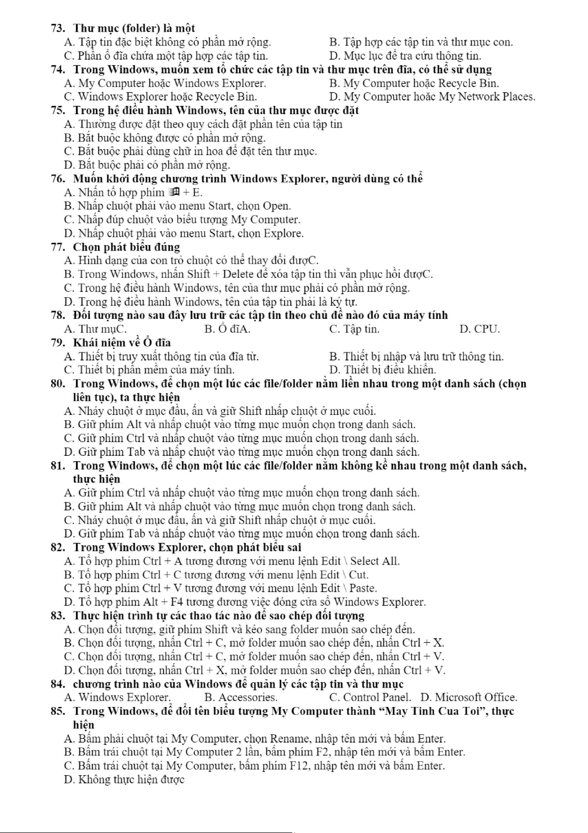 Trắc nghiệm tin học đại cương | Đại học Y Dược Cần Thơ