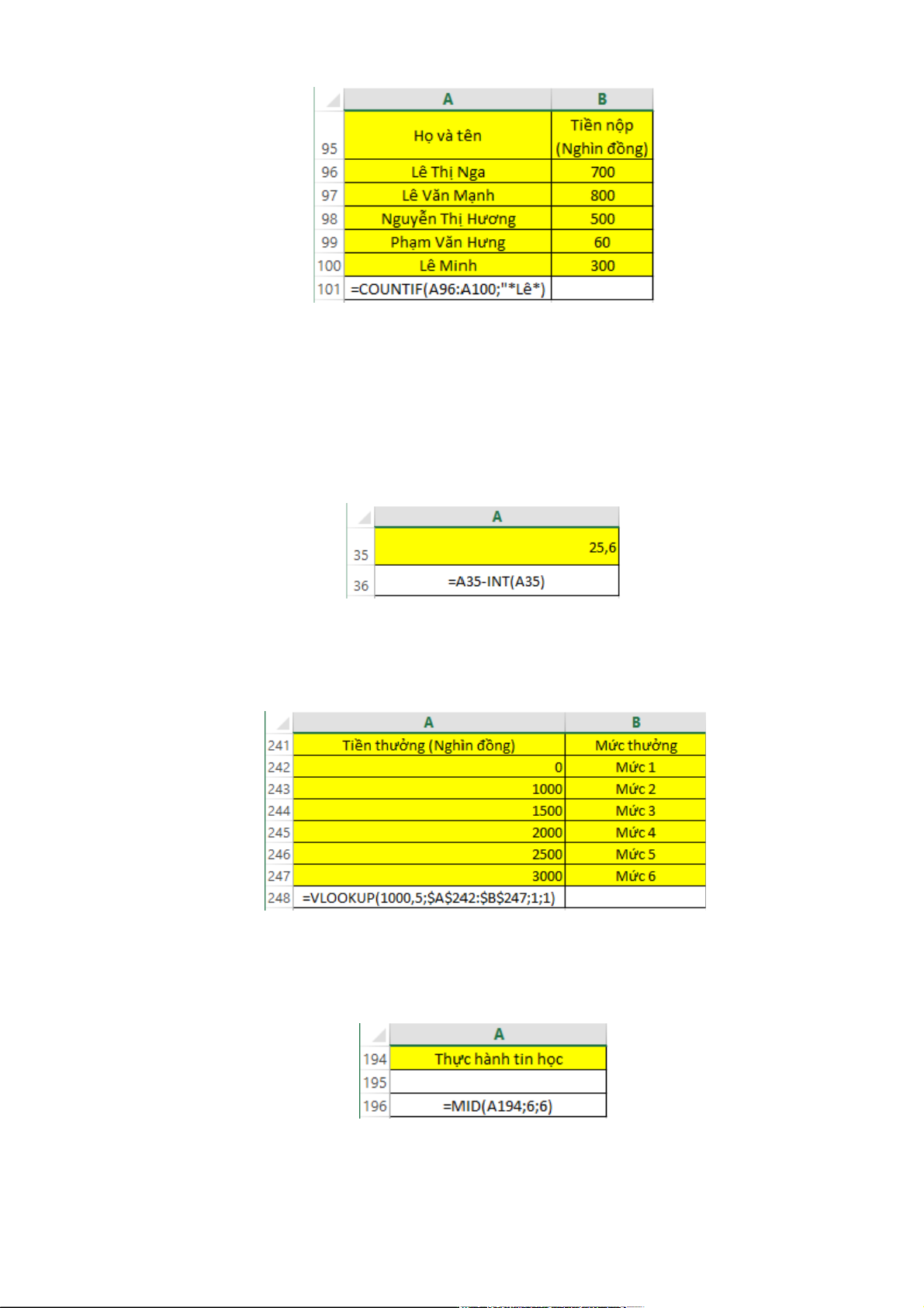 Câu 22: Trong MS Excel 2010, công thức tại ô A196 trả về kết quả nào? A. ành tin B. ành ti C. hành t D. tin học