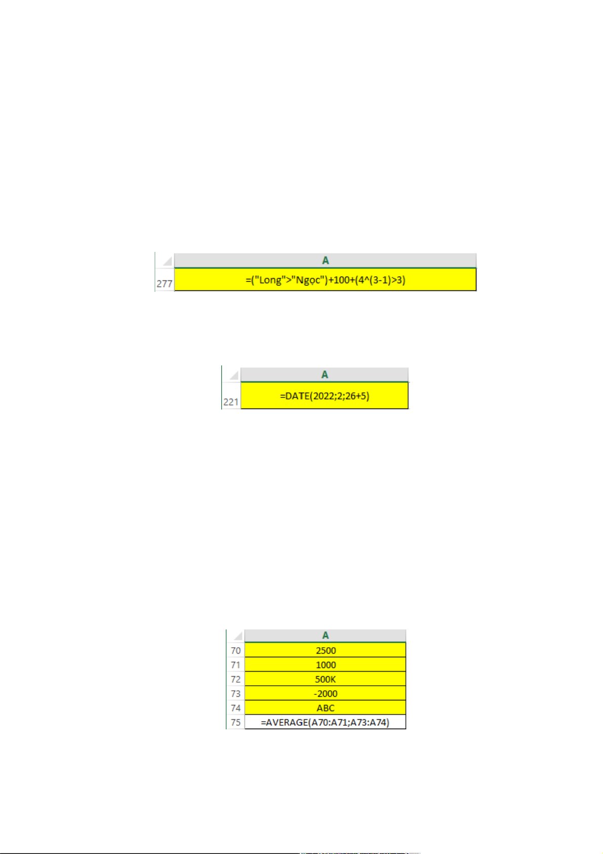 Câu 27: Trong MS Excel 2010, công thức tại ô A77 trả về kết quả nào? A. Báo lỗi B. Giá trị số khác C. 302 D. 375