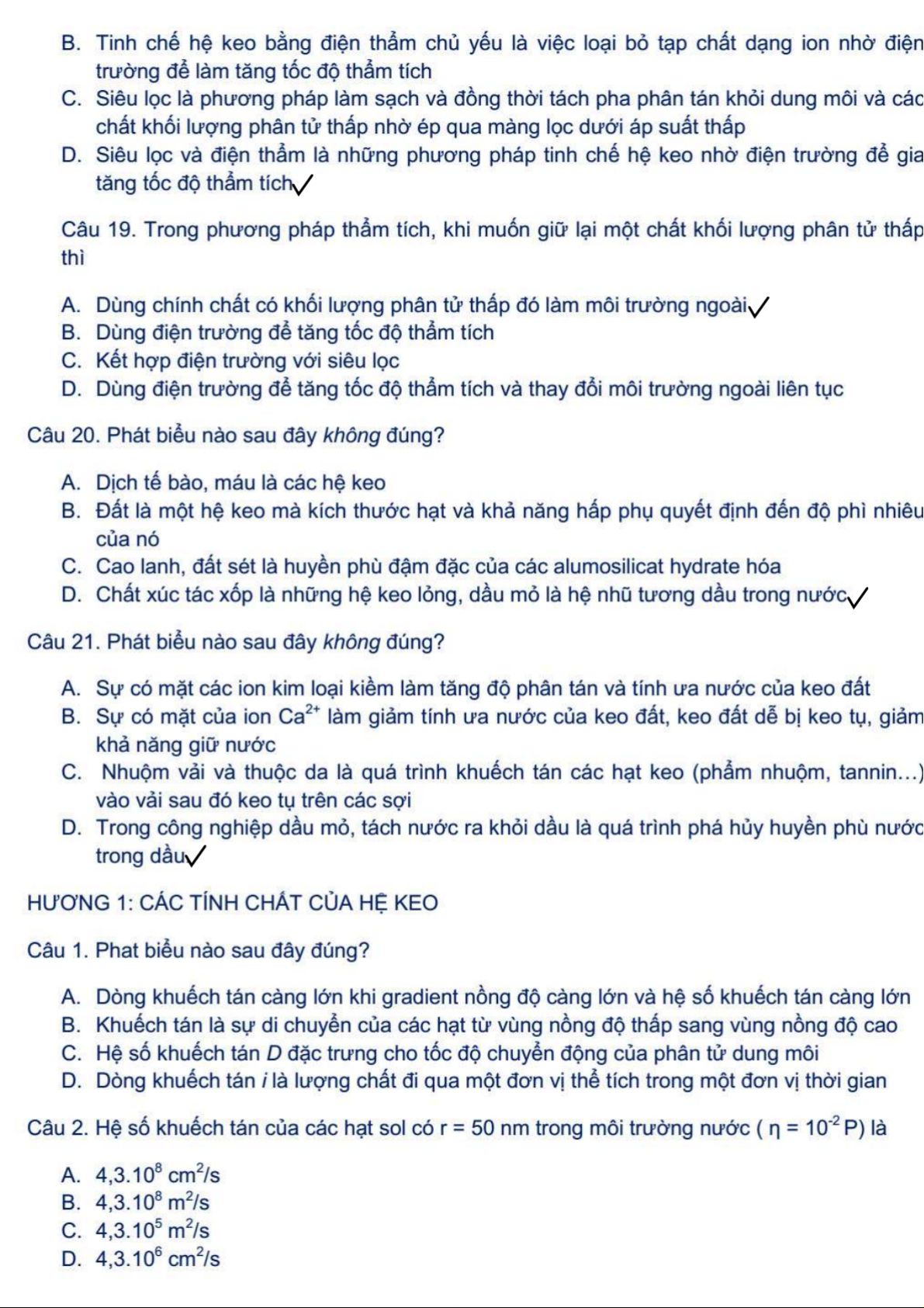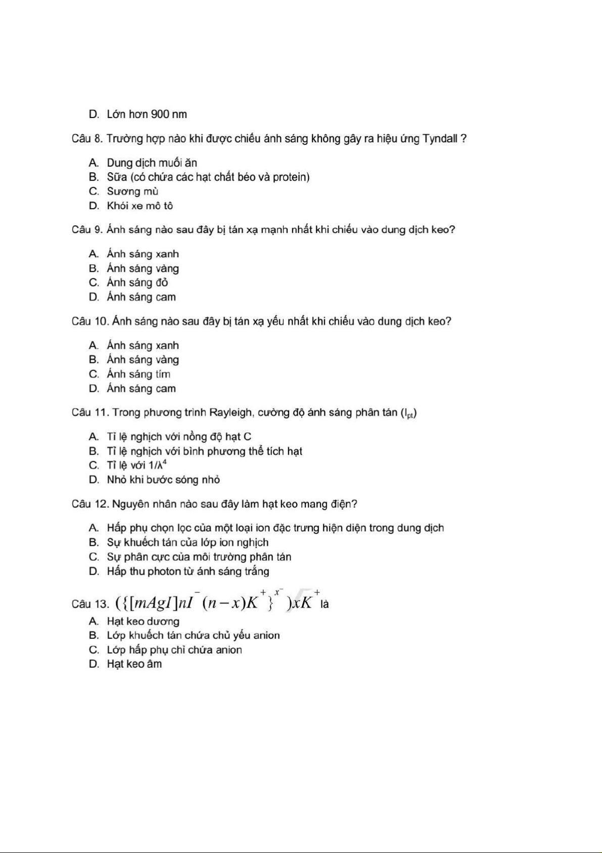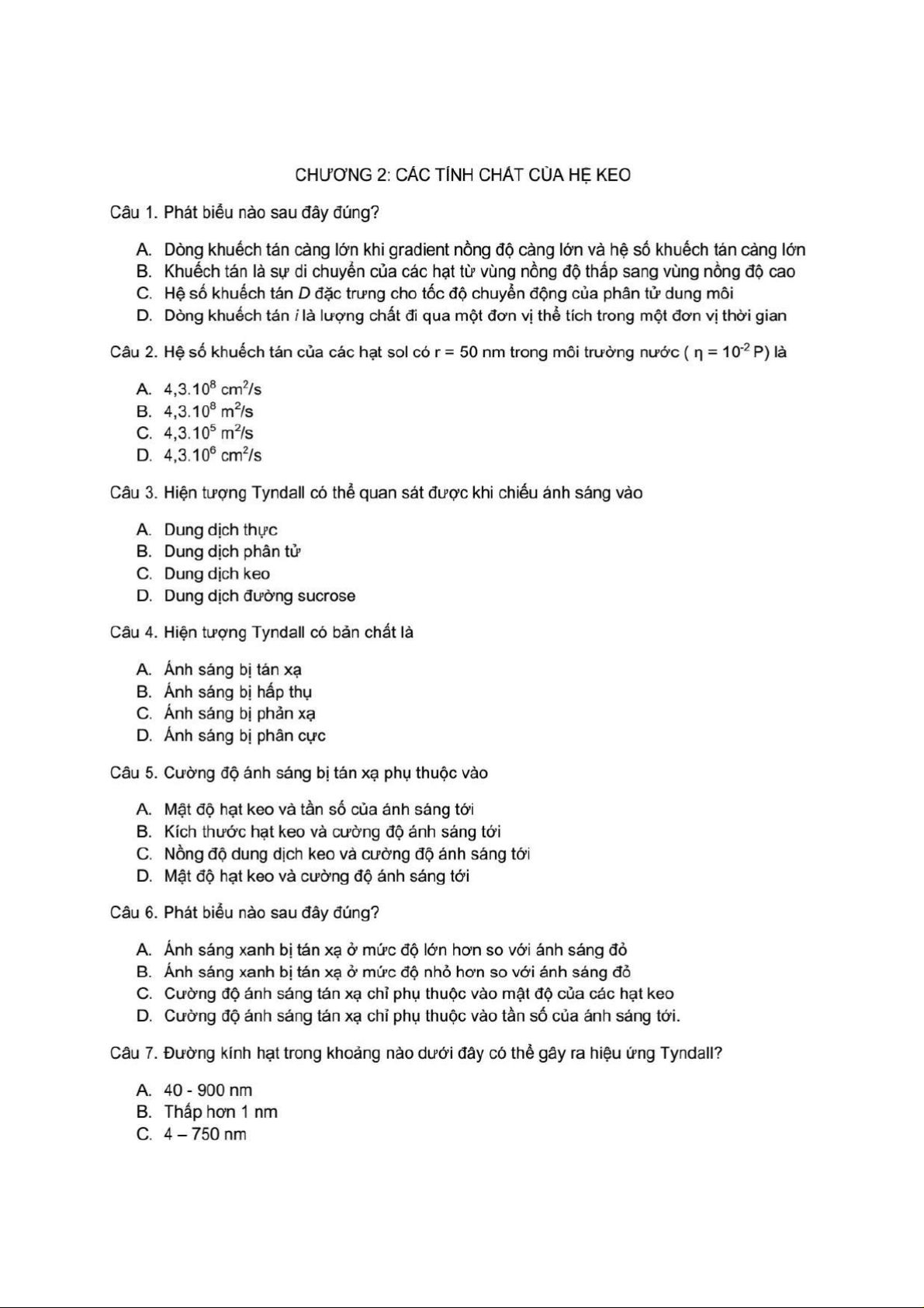 Bộ 100 Câu Hỏi Trắc Nghiệm Hóa Keo | Hóa Keo | Trường Đại học Khoa học Tự nhiên, Đại học Quốc gia Hà Nội