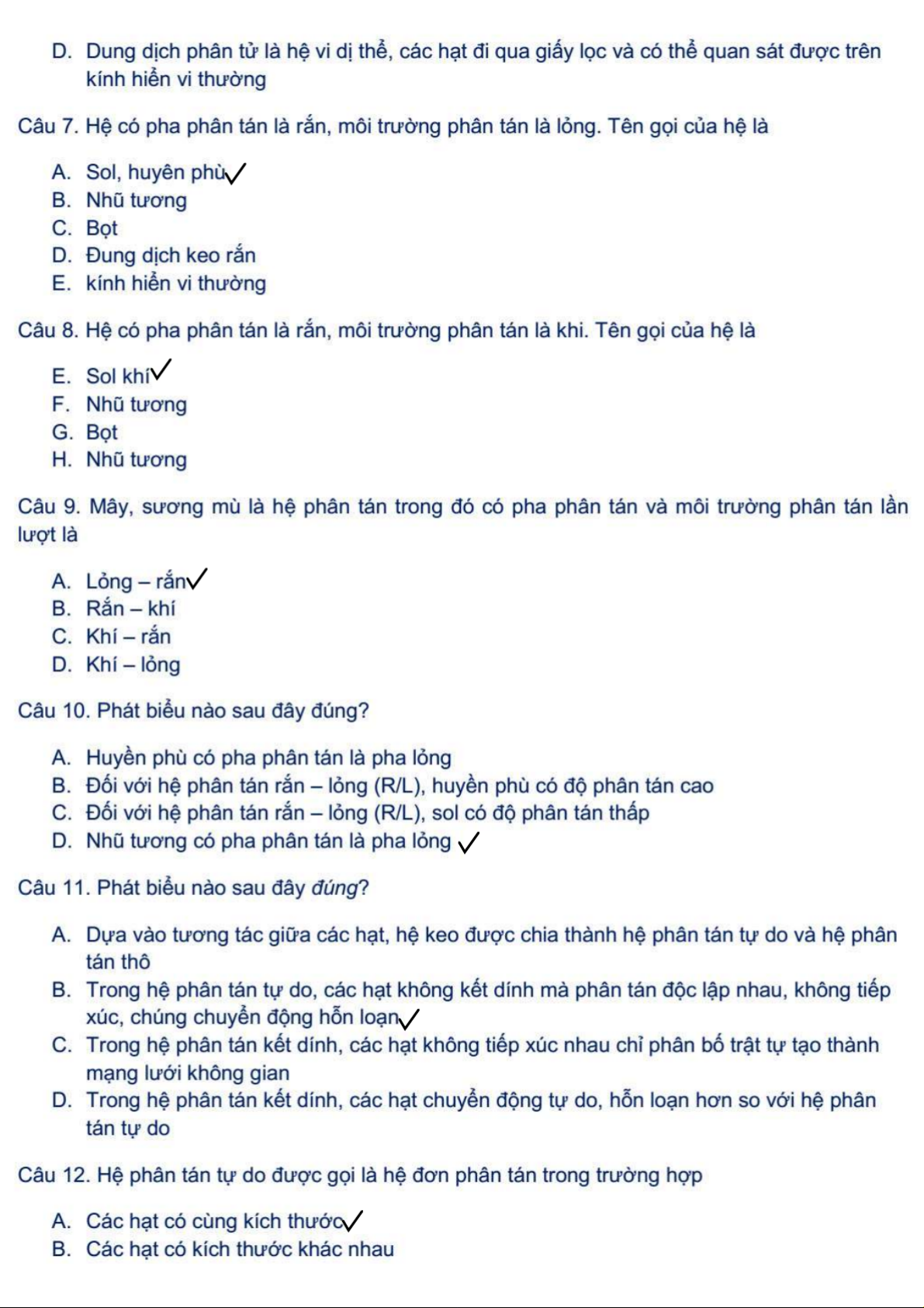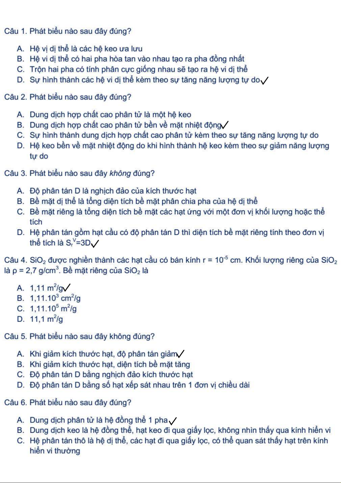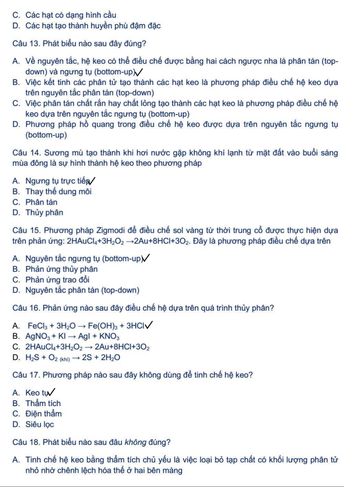 Bộ 100 Câu Hỏi Trắc Nghiệm Hóa Keo | Hóa Keo | Trường Đại học Khoa học Tự nhiên, Đại học Quốc gia Hà Nội