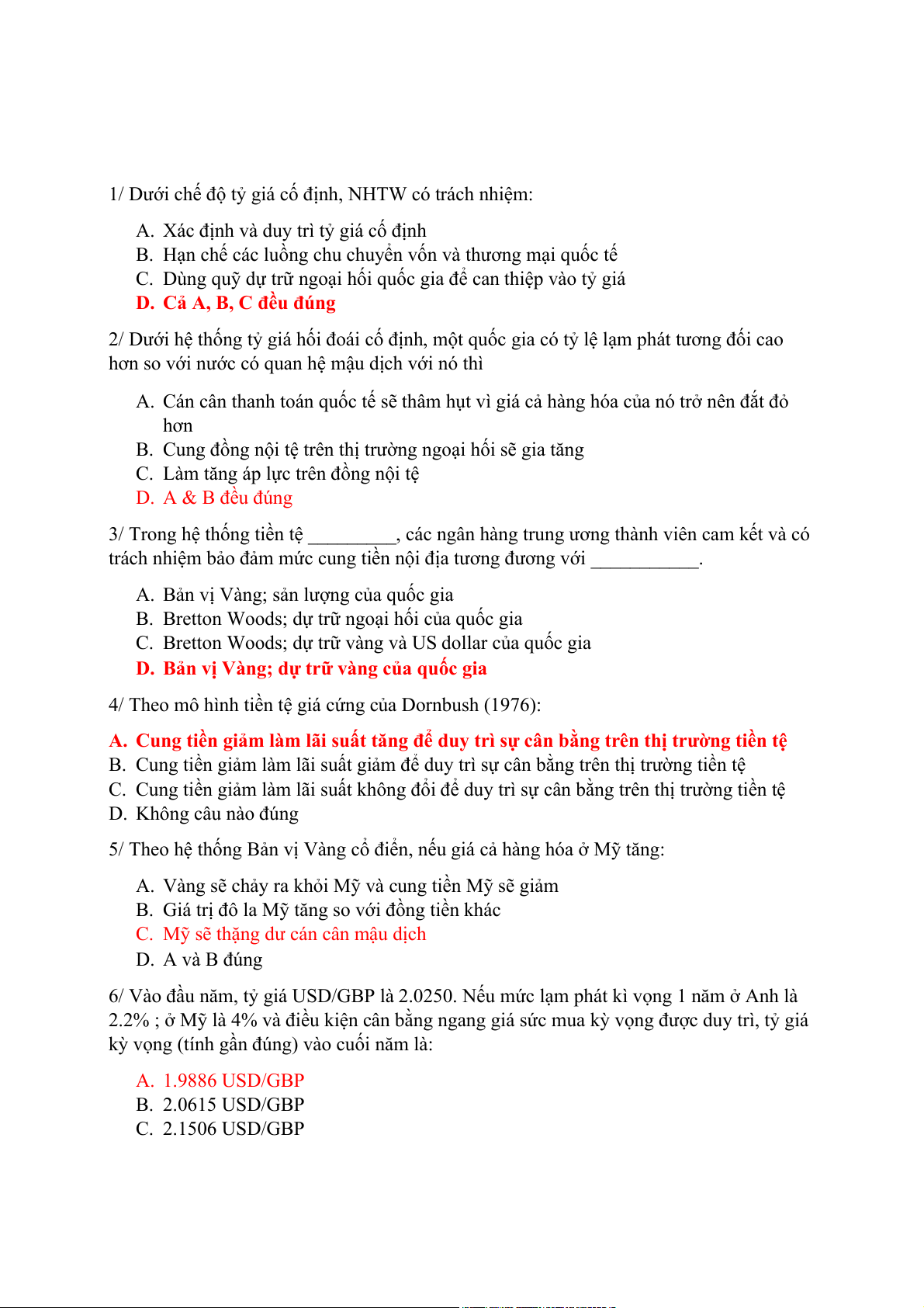 74/ Hệ thống tiền tệ quốc tế (IMS) đã trãi qua các giai đoạn phát triển: (i) Song bản vị;