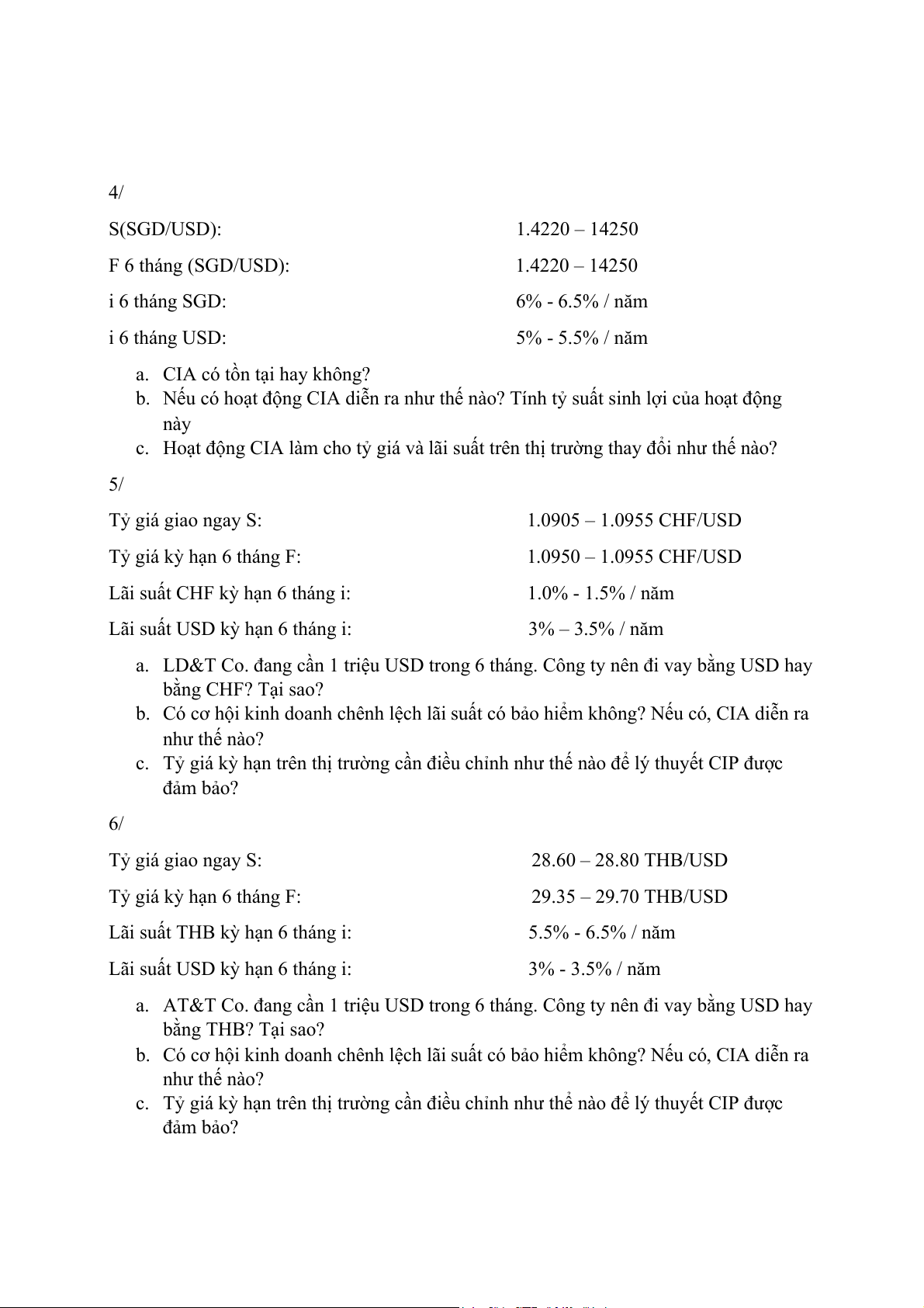c. Tỷ giá kỳ hạn trên thị trường cần điều chỉnh như thế nào để lý thuyết CIP được đảm bảo? 6/