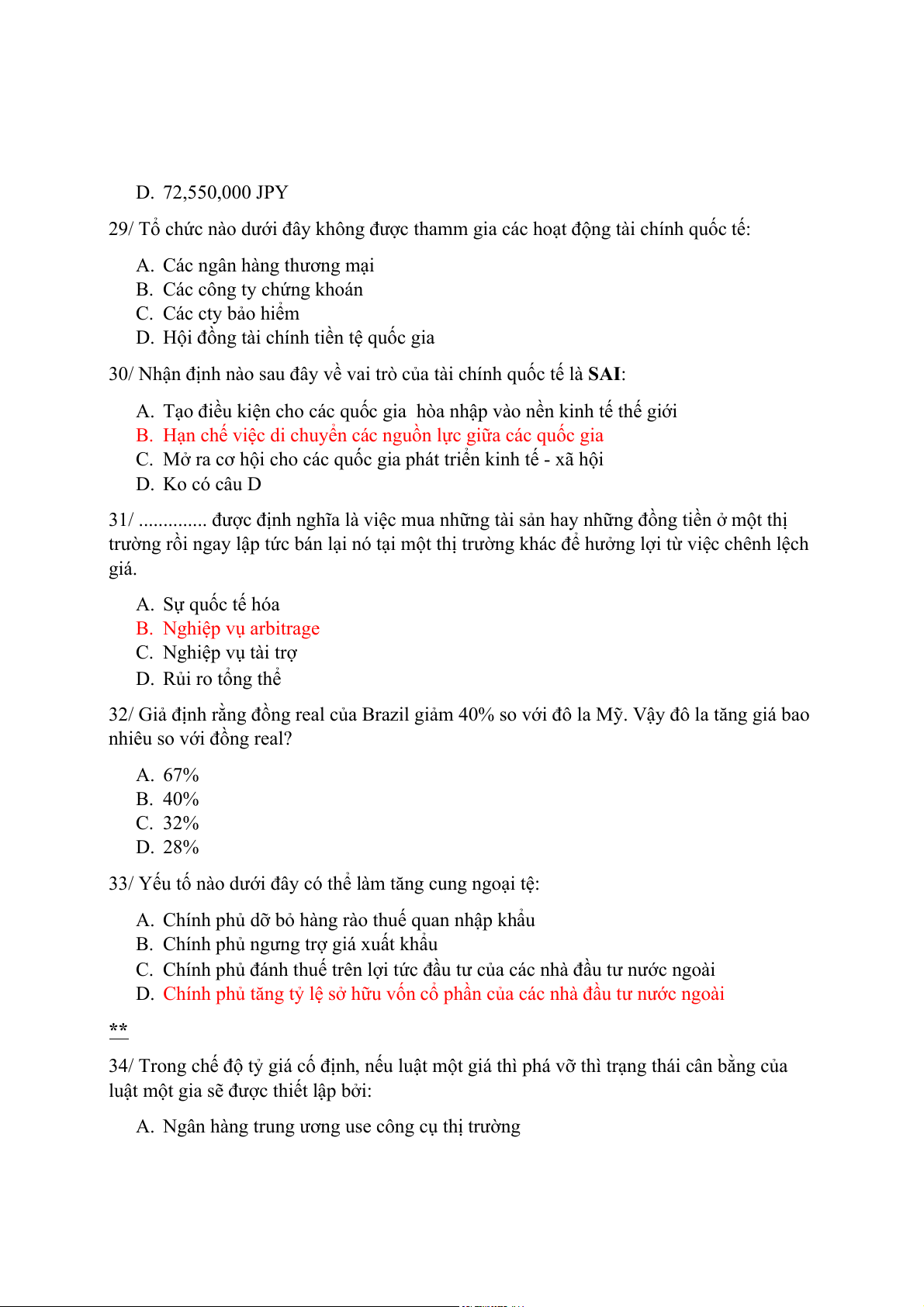 22/ Câu nào sau đây là ví dụ cho sự can thiệp của Chính phủ trên thị trường ngoại hối: