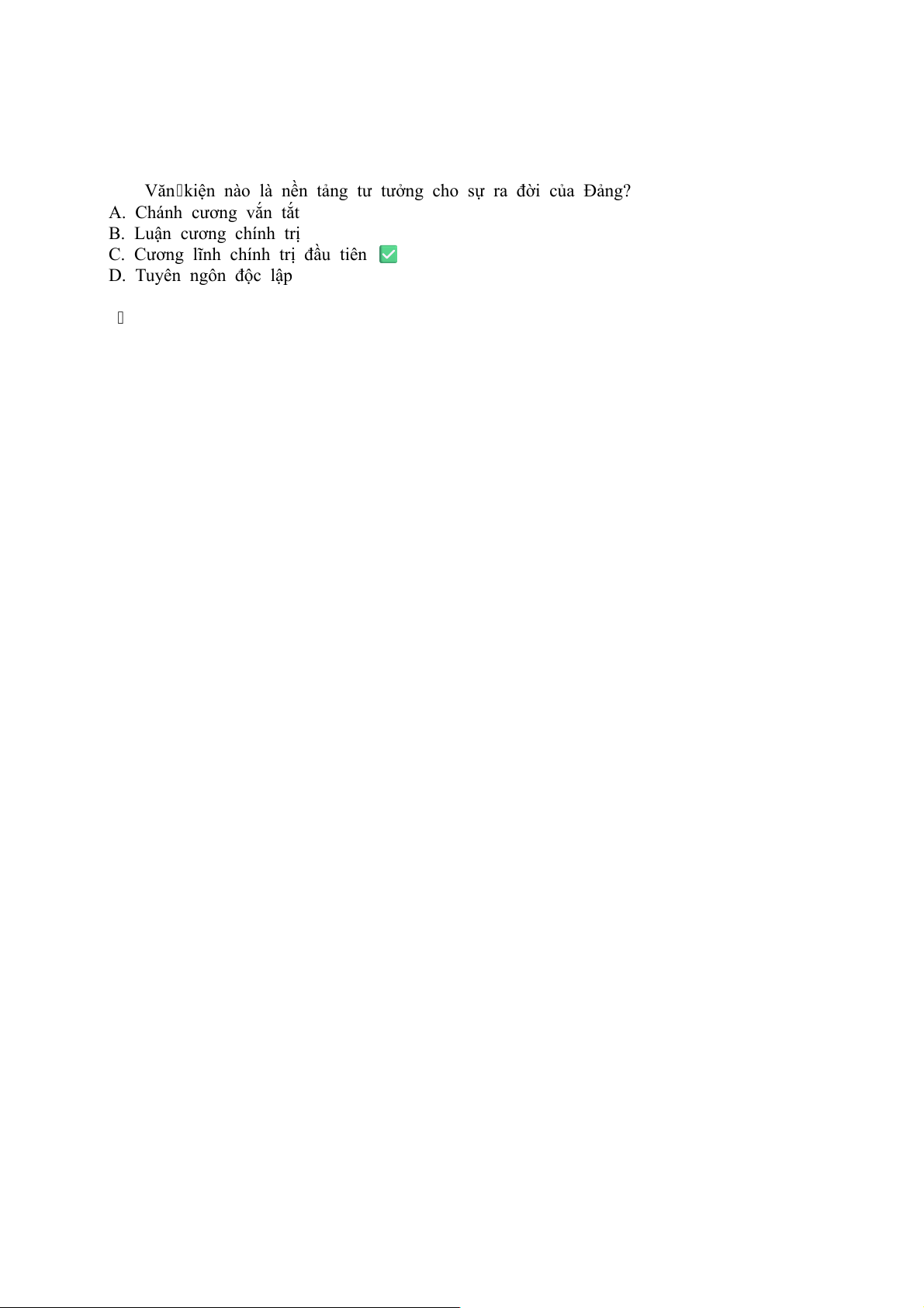 C. Cương lĩnh chính trị đầu tiên ✅ D. Tuyên ngôn độc lập