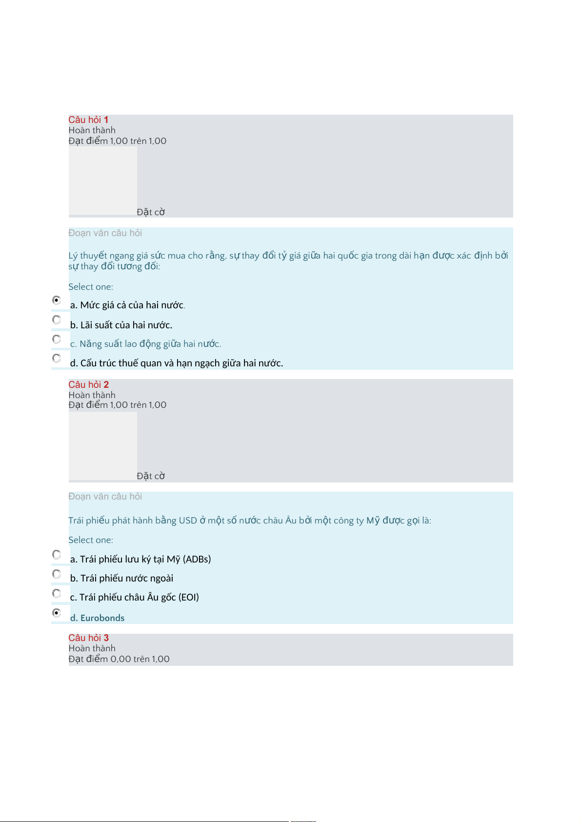 c.TráiphiếuchâuÂugốc(EOI) d.Eurobonds Câu hỏi 3 Hoàn thành Đ t ạ i đ m ể 0,00 trên 1,00 Đ t ặ cờ Đoạn văn câu hỏi