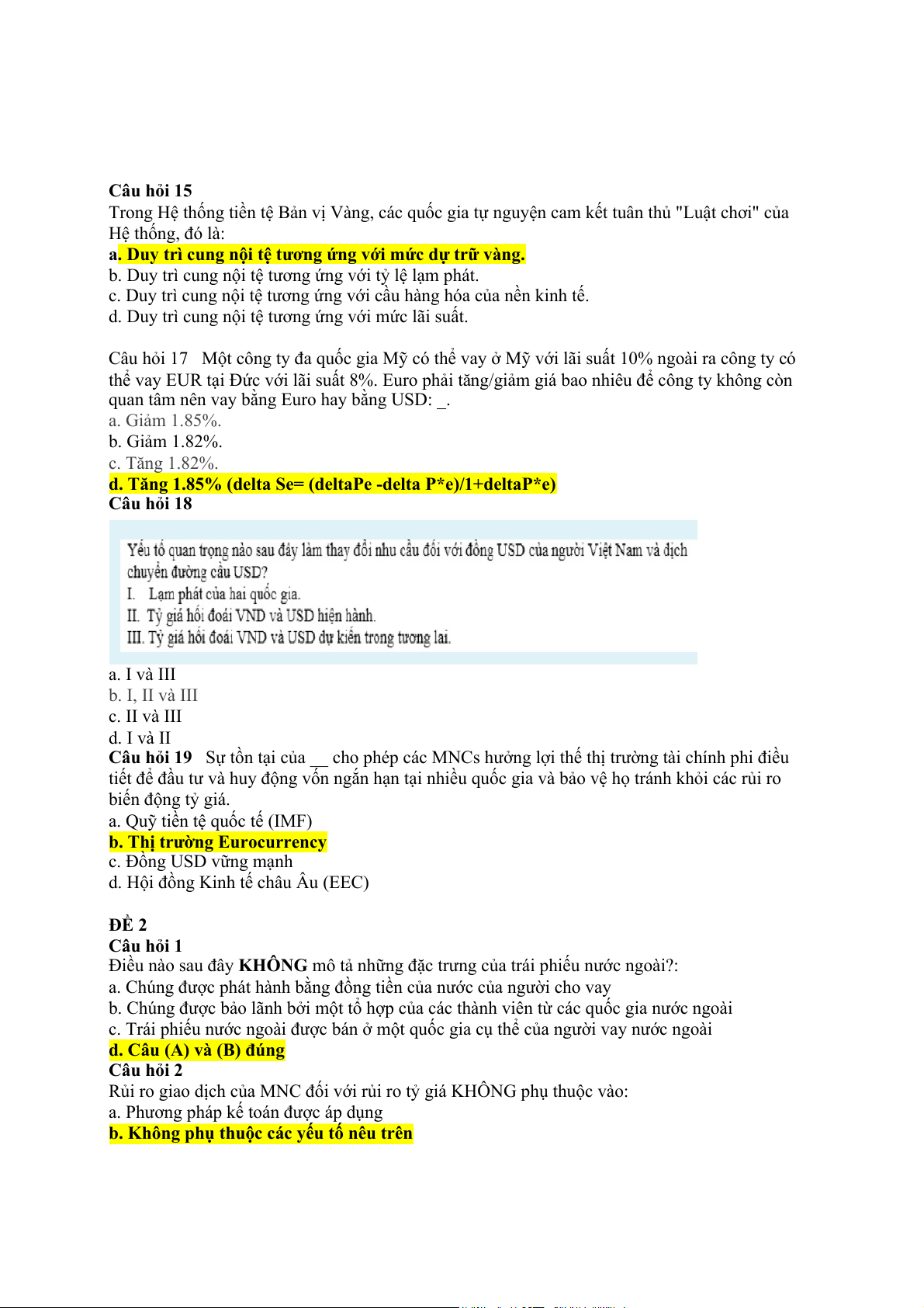 Câu hỏi 17 Một công ty đa quốc gia Mỹ có thể vay ở Mỹ với lãi suất 10% ngoài ra công ty có