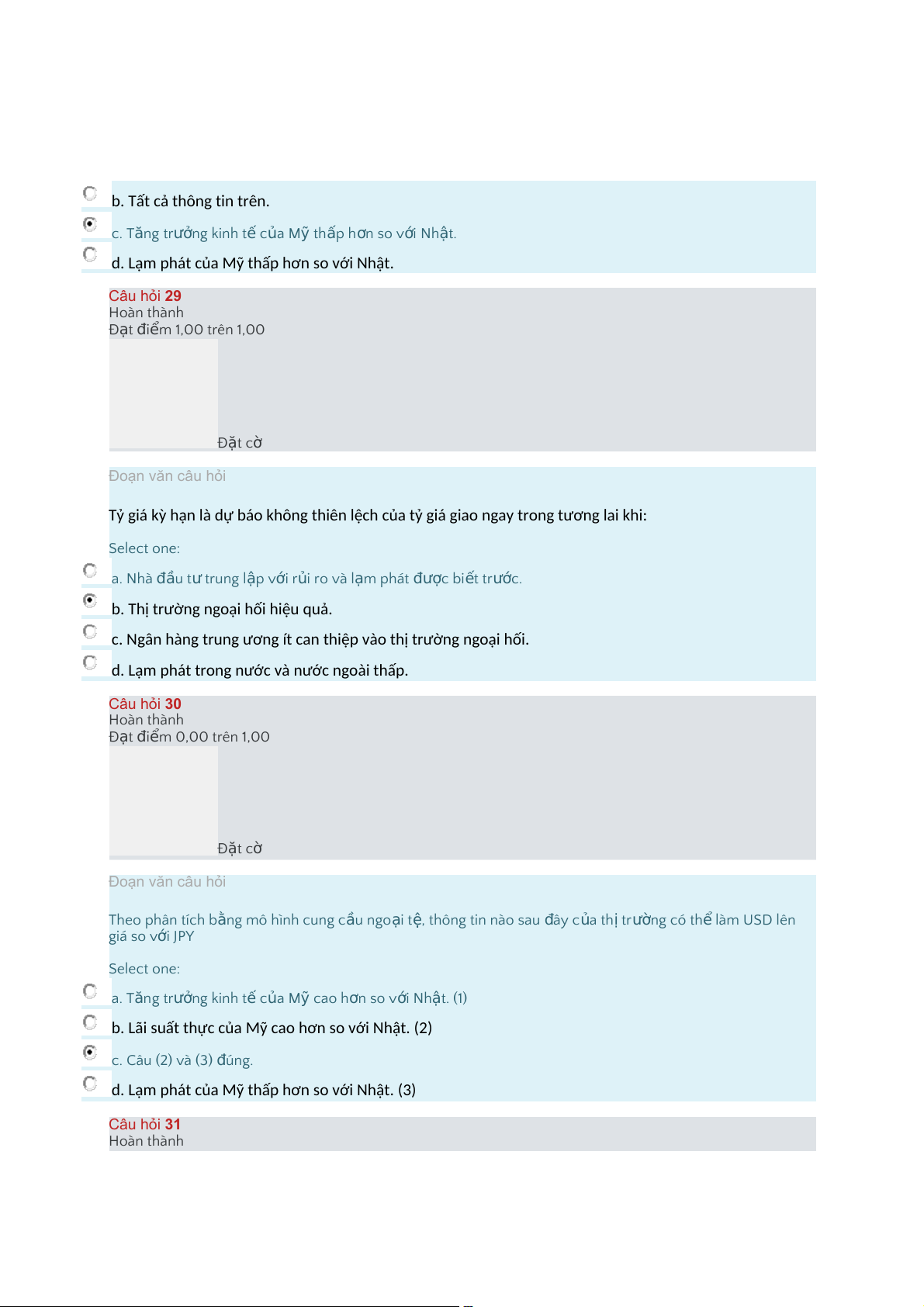 d.LạmphátcủaMỹthấphơnsovớiNhật. Câu hỏi 29 Hoàn thành Đ t ạ i đ m ể 1,00 trên 1,00 Đ t ặ cờ Đoạn văn câu hỏi