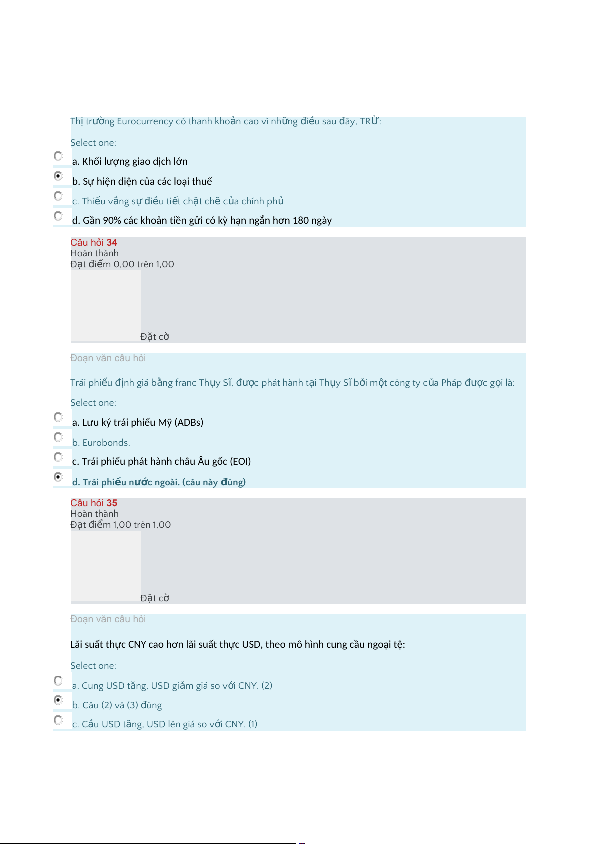 d.Gần90%cáckhoảntiềngửicókỳhạnngắnhơn180ngày Câu hỏi 34 Hoàn thành Đ t ạ i đ m ể 0,00 trên 1,00 Đ t ặ cờ Đoạn văn câu hỏi Trái phi u ế định giá b n ằ g franc Th y ụ S ,ĩ c đượ phát hành t i ạ Th y ụ S ĩb i ở m t ộ công ty c a ủ Pháp c đượ g i ọ là: Select one: