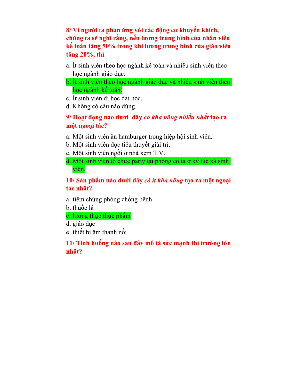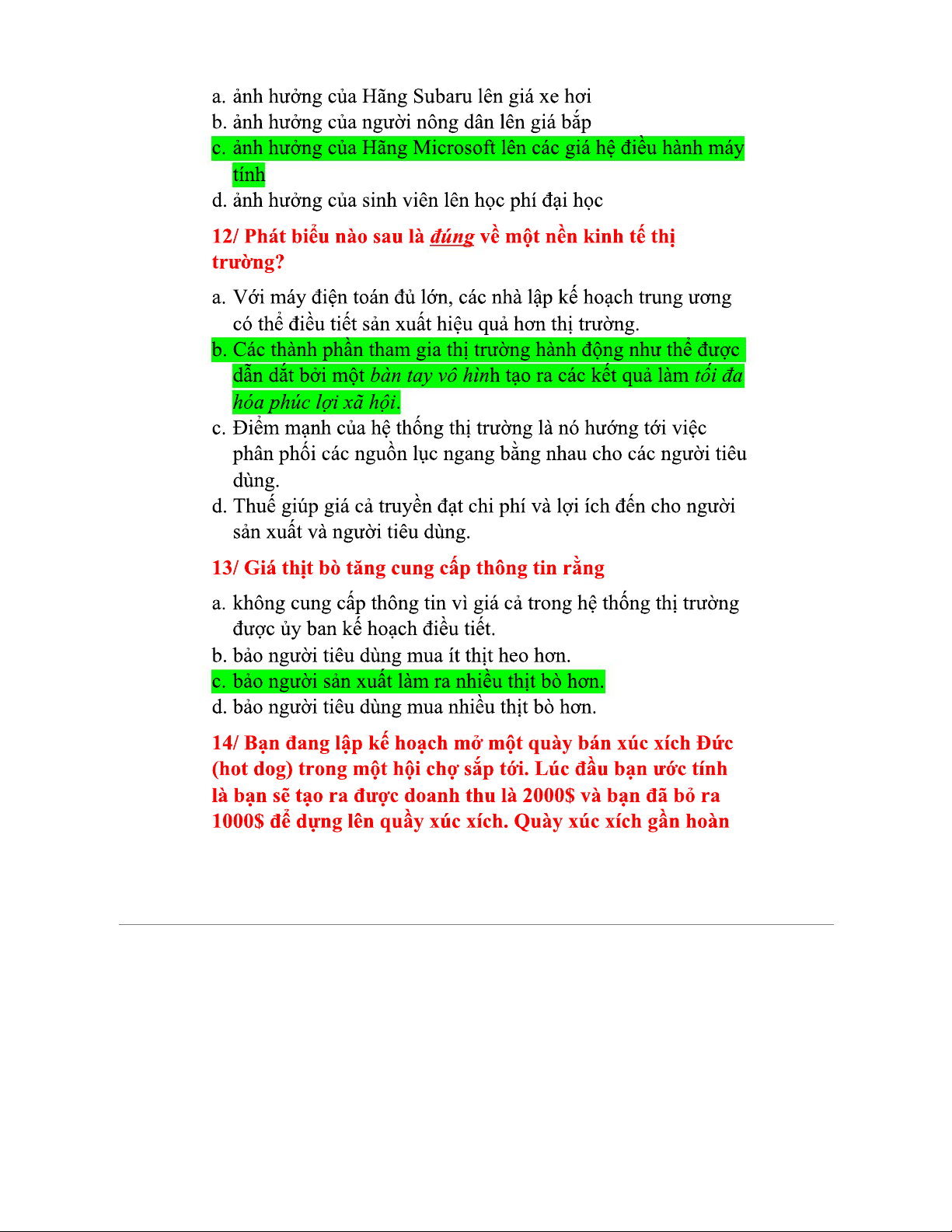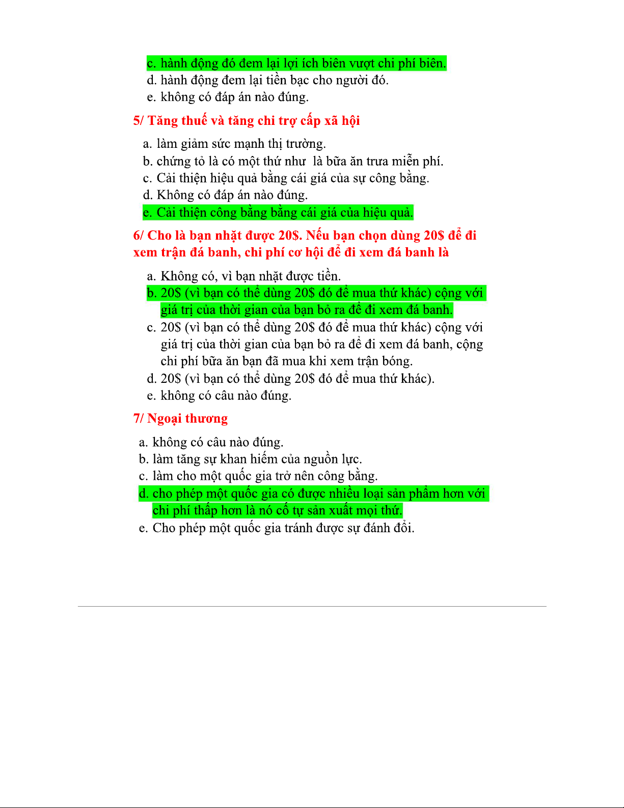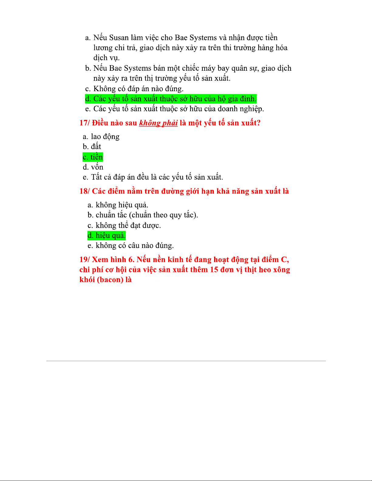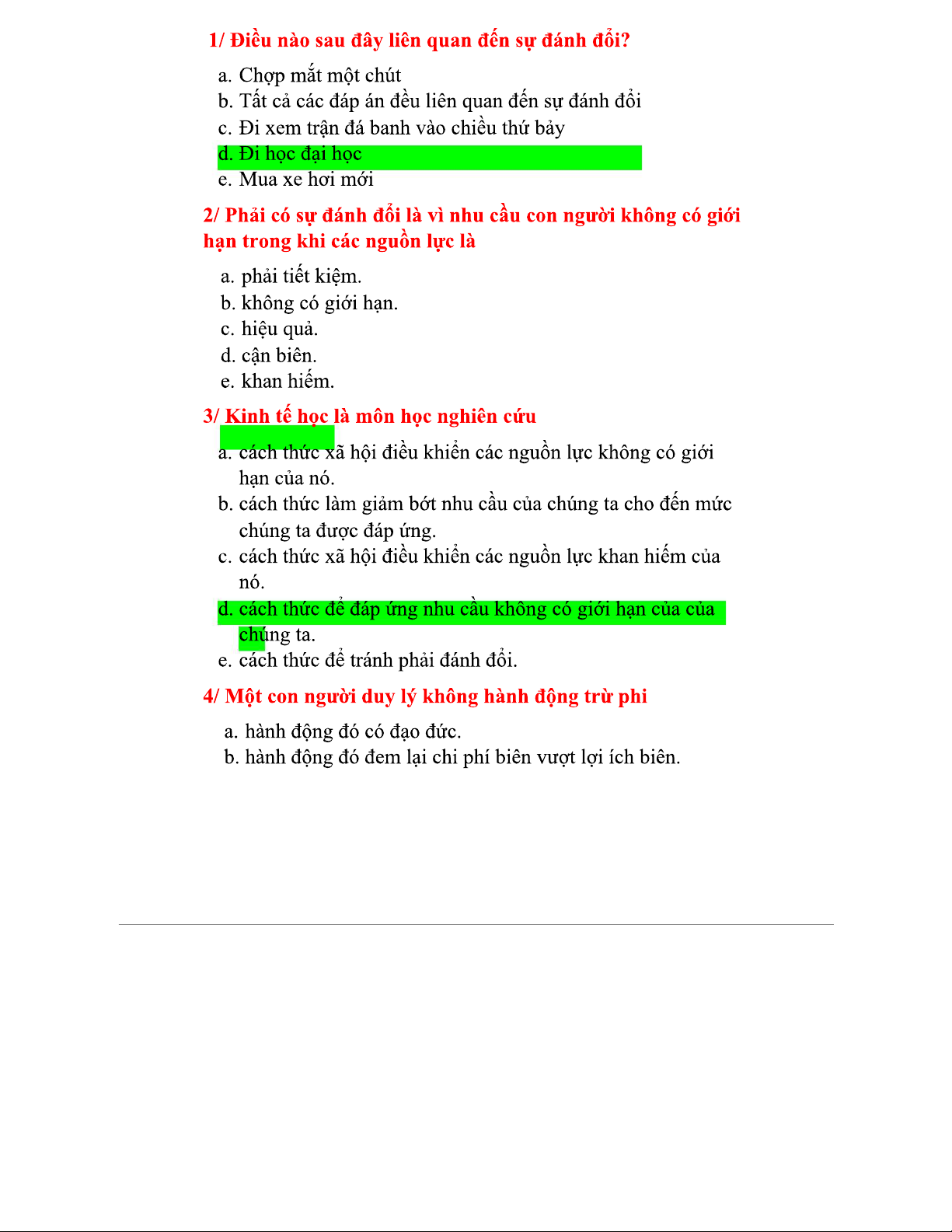 Trắc nghiệm Vi mô Chương 1 - Ôn tập những câu hỏi quan trọng
