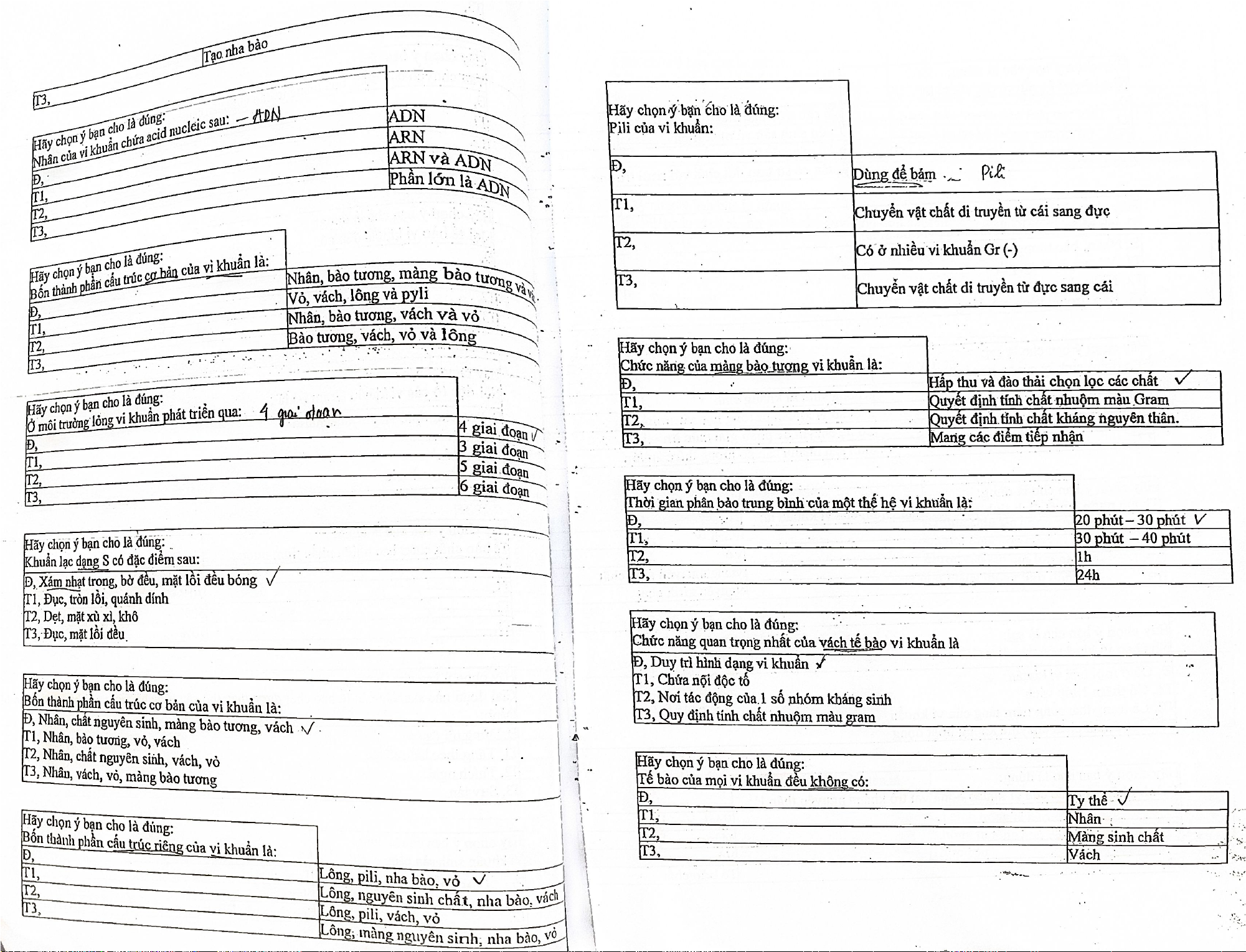 Đề thi Vi-sinh học - Kiểm tra kiến thức về vi khuẩn môn Vi sinh | Trường Đại Học Tây Nguyên
