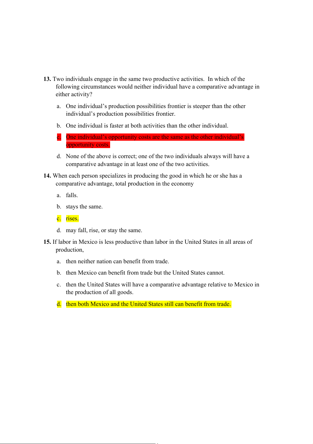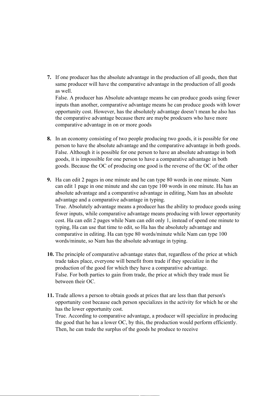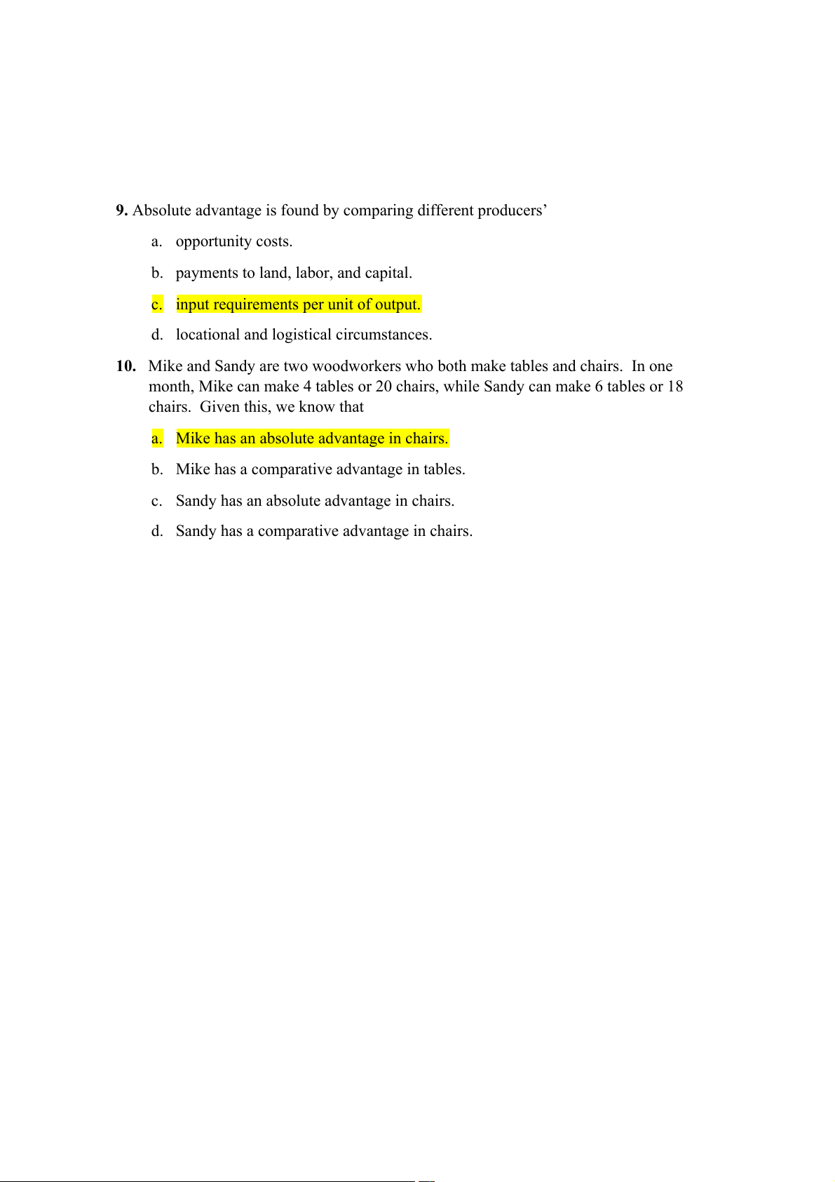 9. Absolute advantage is found by comparing different producers’ a. opportunity costs.