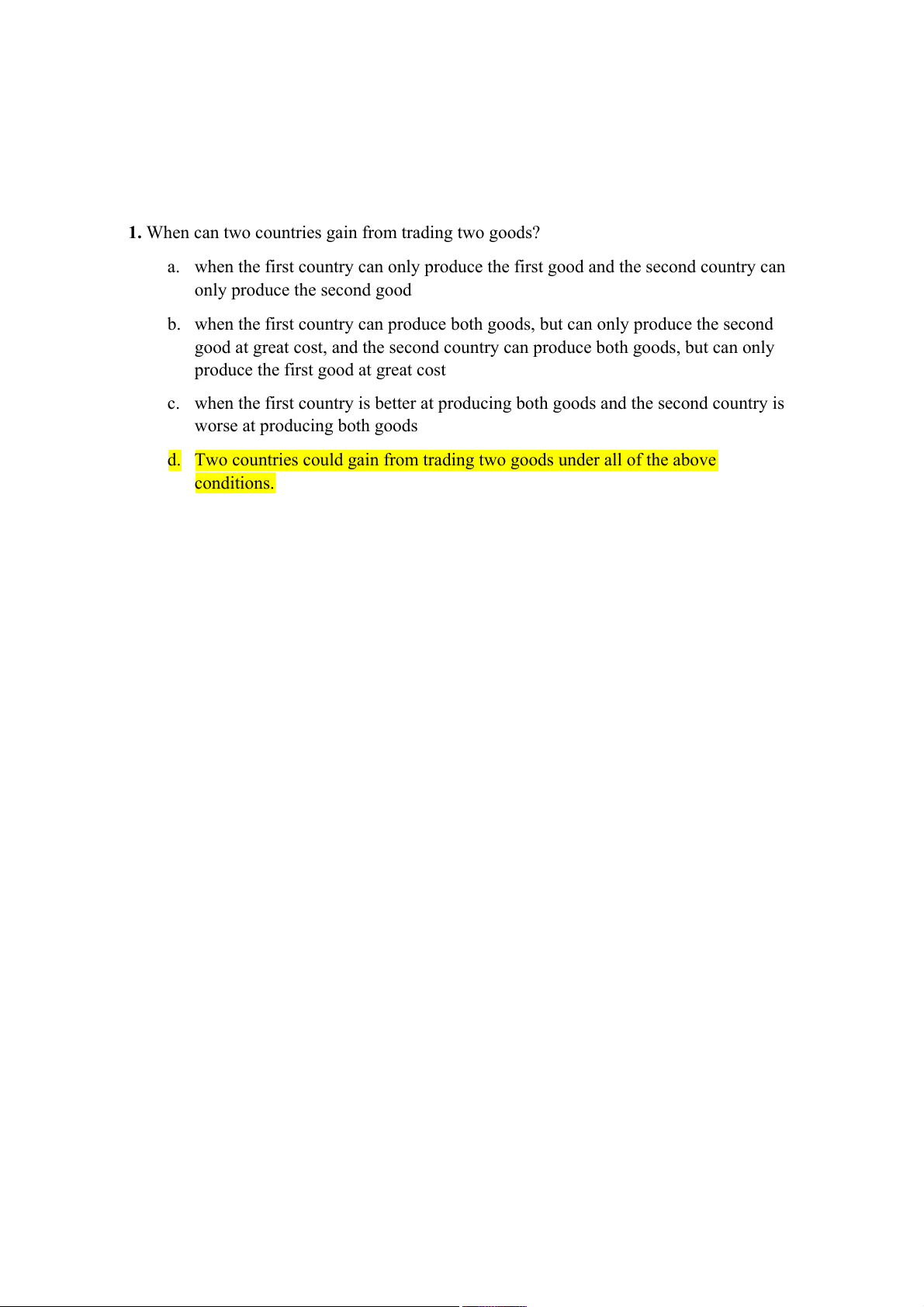 d. Two countries could gain from trading two goods under all of the above conditions.