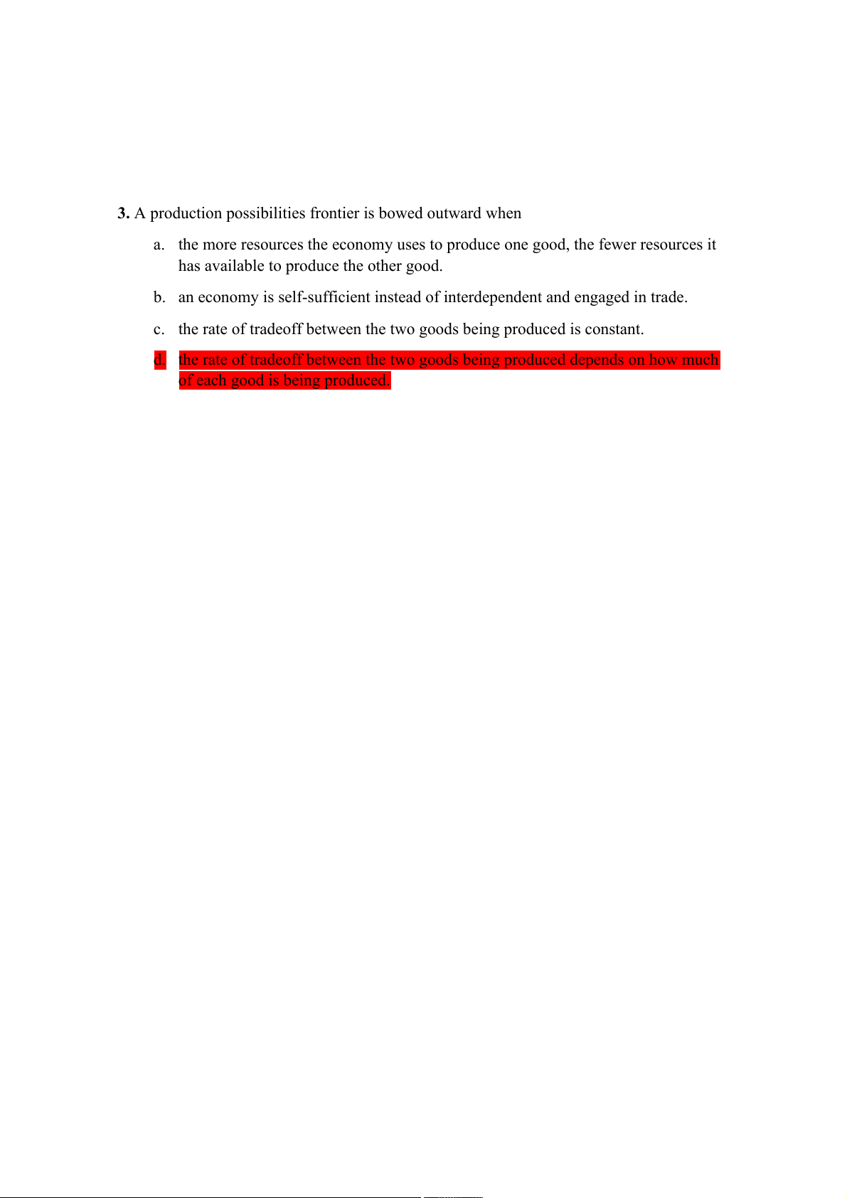 a. the more resources the economy uses to produce one good, the fewer resources it