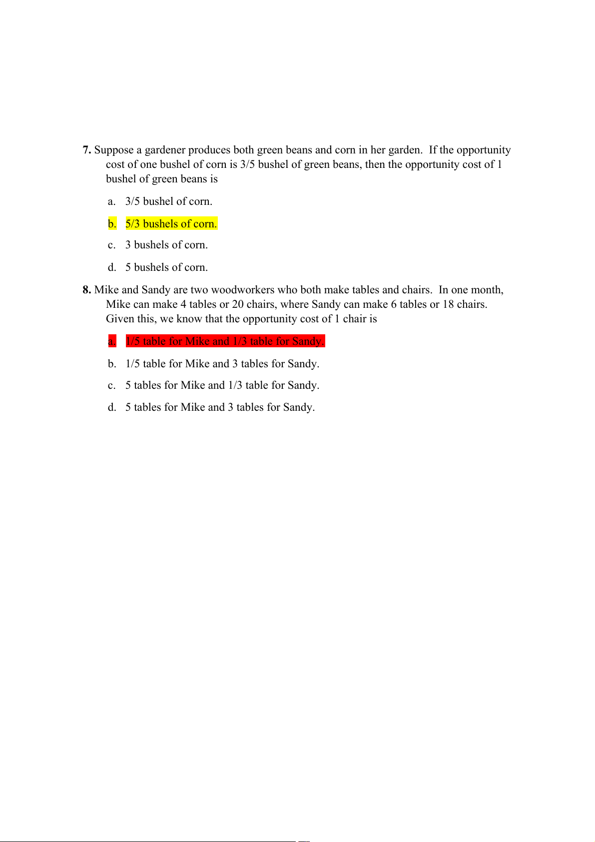 7. Suppose a gardener produces both green beans and corn in her garden. If the opportunity