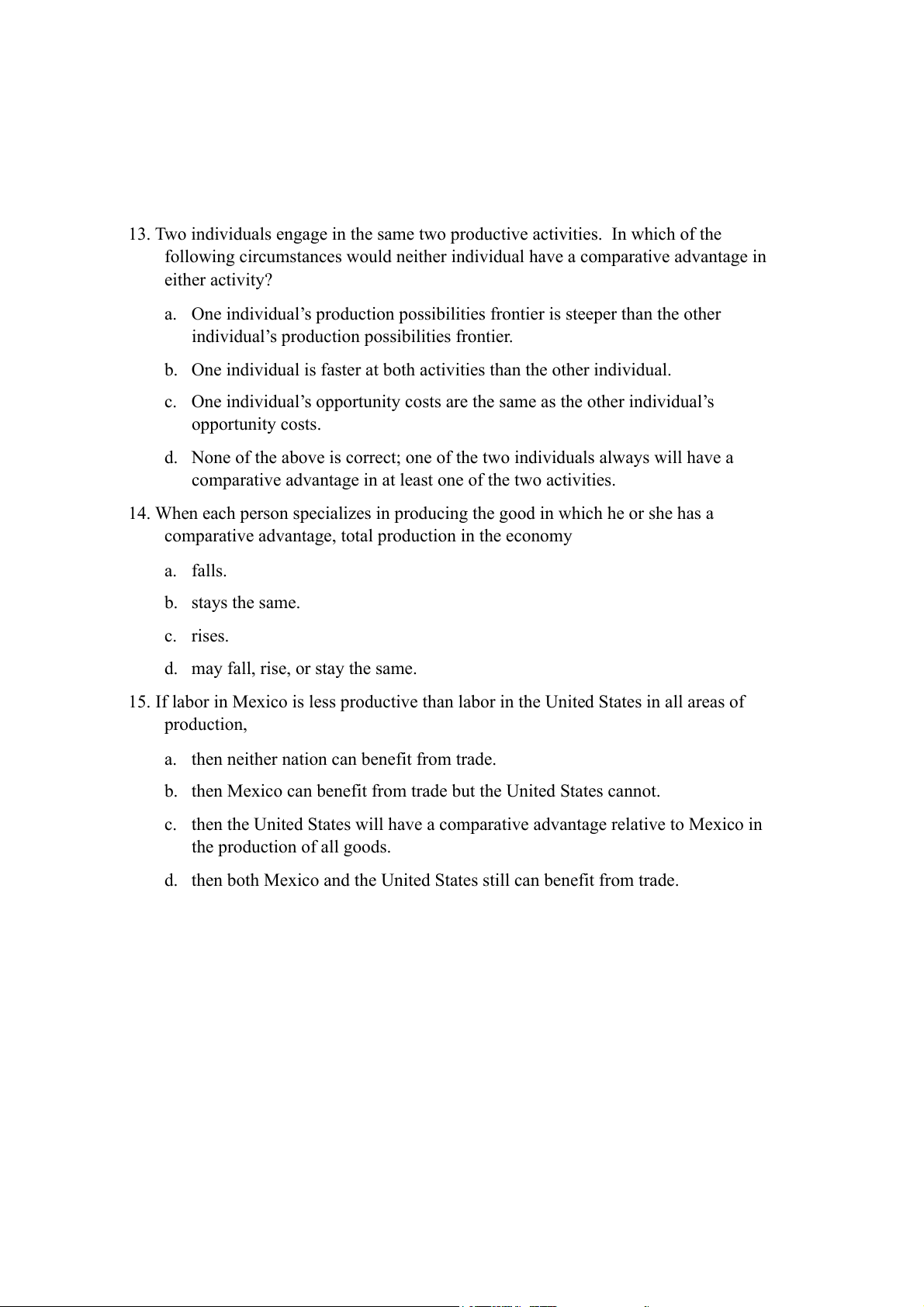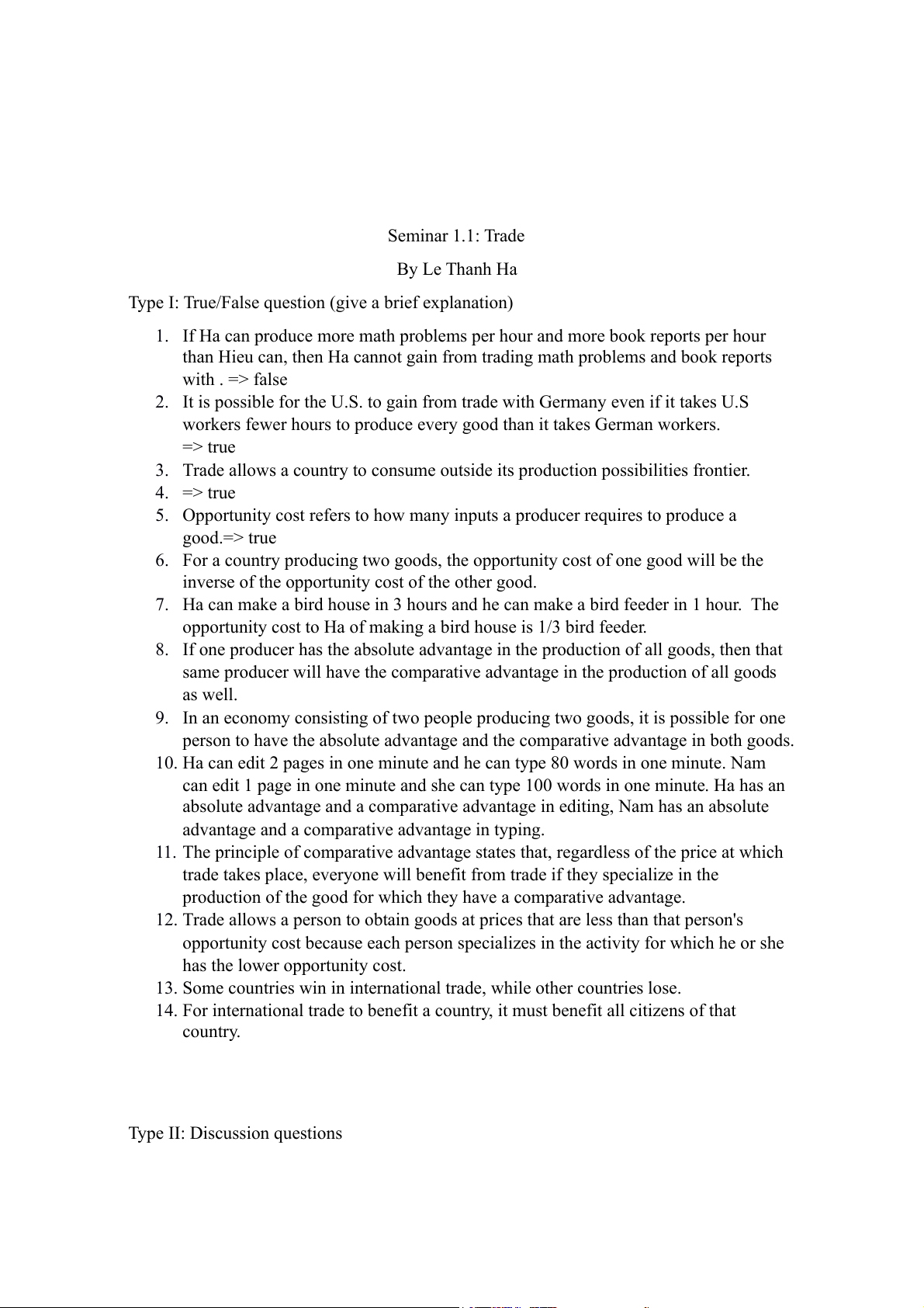 14. For international trade to benefit a country, it must benefit all citizens of that country. Type II: Discussion questions Type III: Multiple Choice