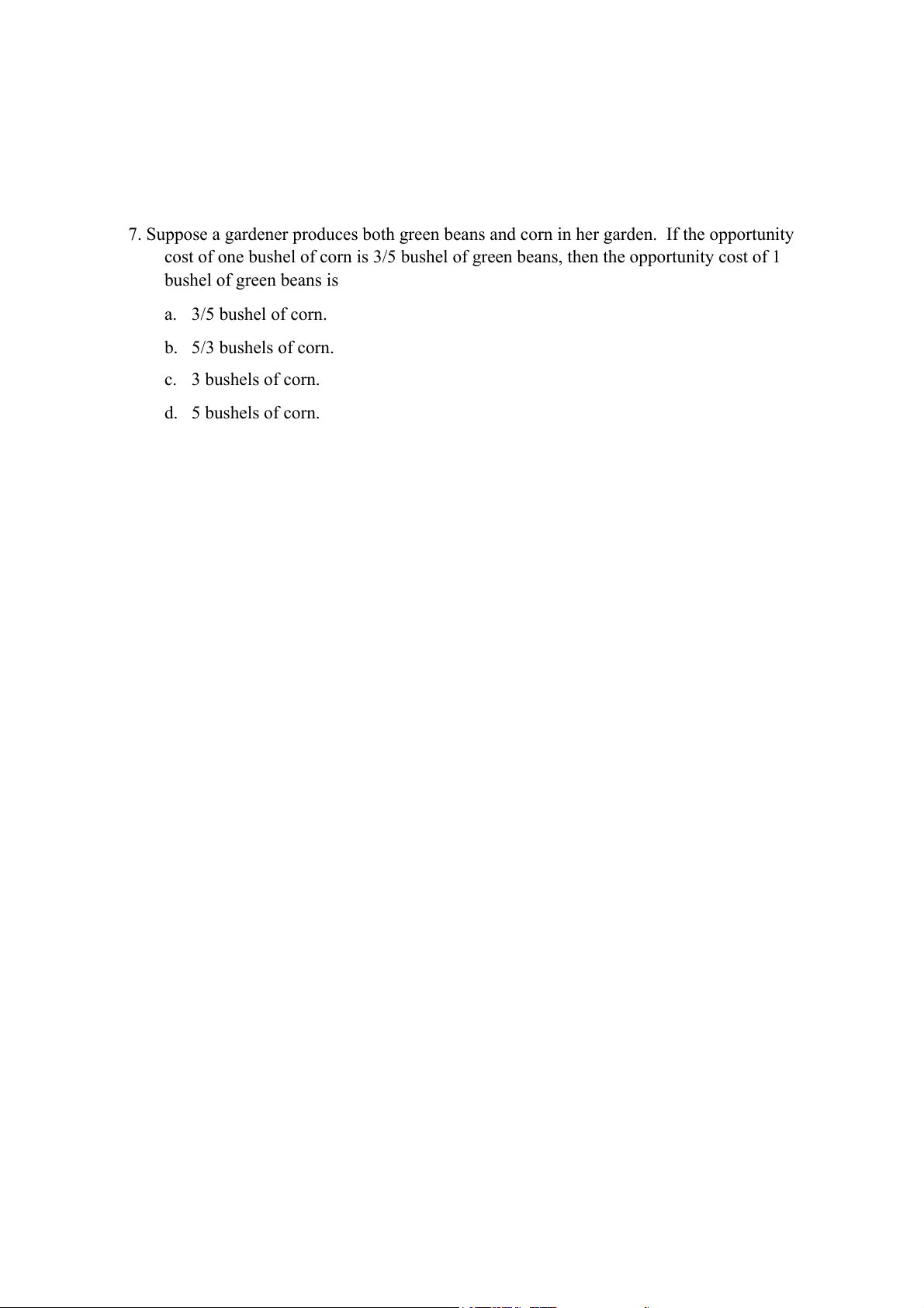 7. Suppose a gardener produces both green beans and corn in her garden. If the opportunity