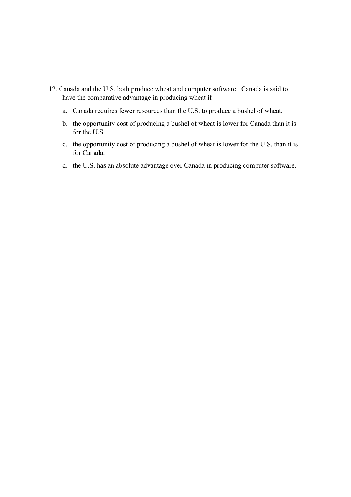 12. Canada and the U.S. both produce wheat and computer software. Canada is said to