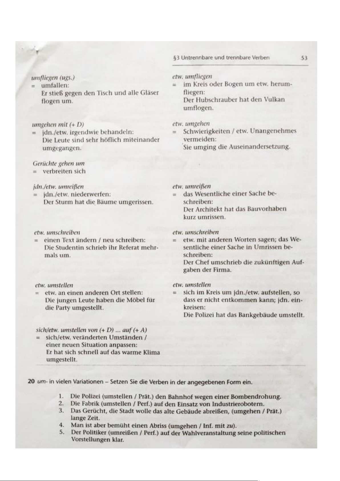 Arbeitsblatt 1- Trennbare und trennbare Verben