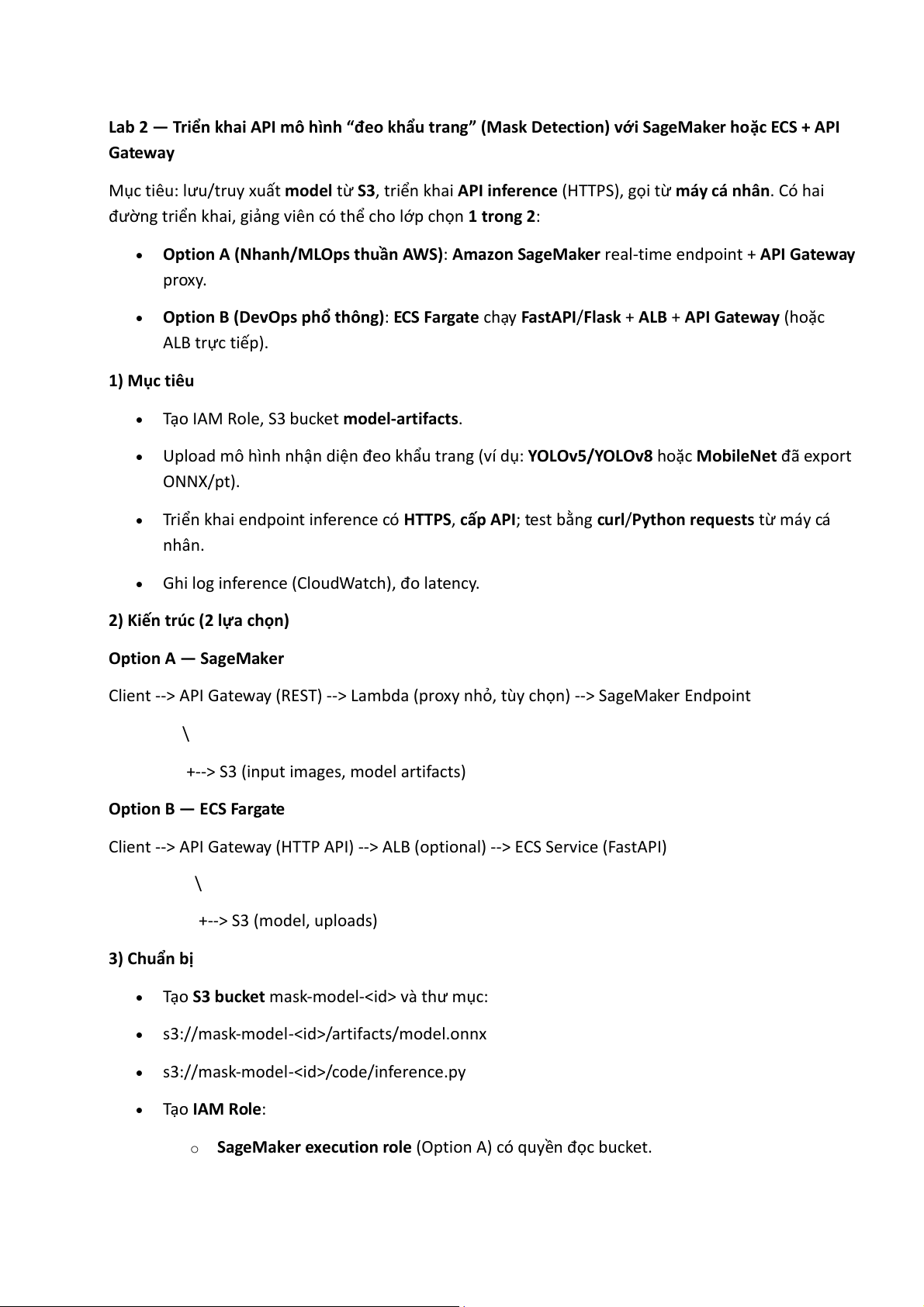 Lab 2 — Triển khai API mô hình “đeo khẩu trang” (Mask Detection) với SageMaker hoặc ECS + API Gateway