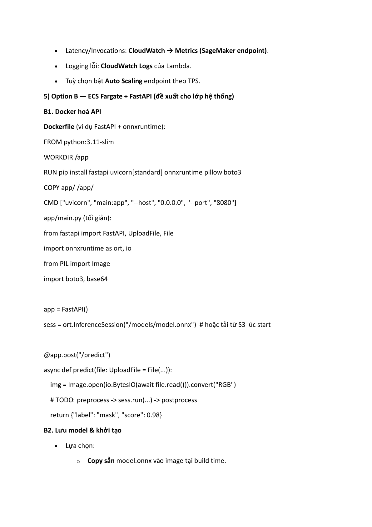 5) Option B — ECS Fargate + FastAPI (đề xuất cho lớp hệ thống) B1. Docker hoá API