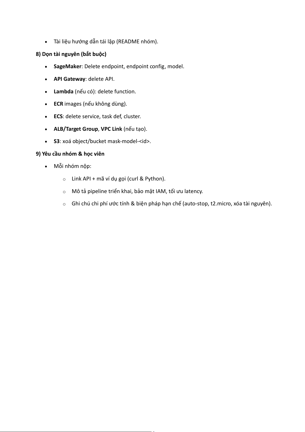 o Ghi chú chi phí ước tính & biện pháp hạn chế (auto-stop, t2.micro, xóa tài nguyên).