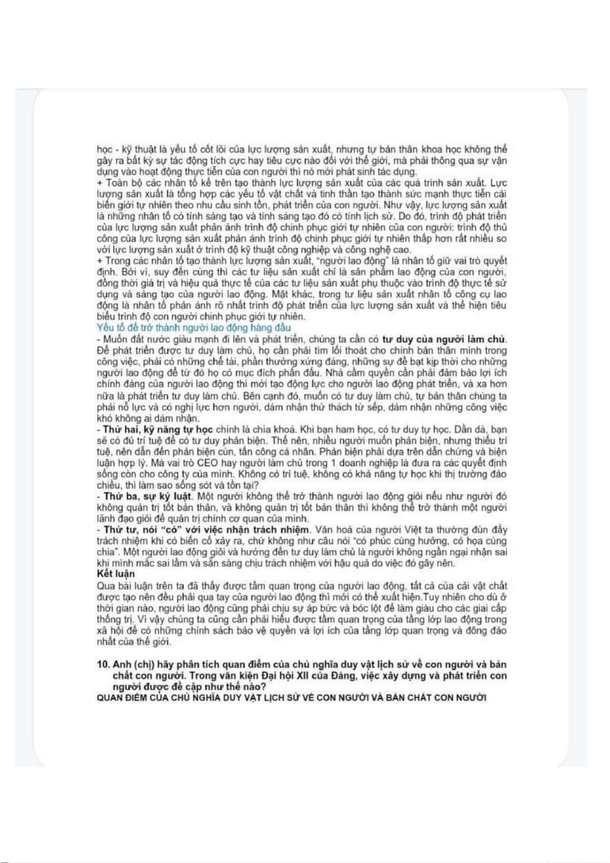 Chủ đề: “bằng lý luận của chủ nghĩa duy vật lịch Sử, anh/chị hãy làm sáng tỏ quan điểm rằng Người lao động là yếu tố hàng đầu của lực lượng Sản xuất môn Triết học Mác - Lênin | Trường Đại học Khoa học Tự nhiên, Đại học Quốc gia Thành phố Hồ Chí Minh
