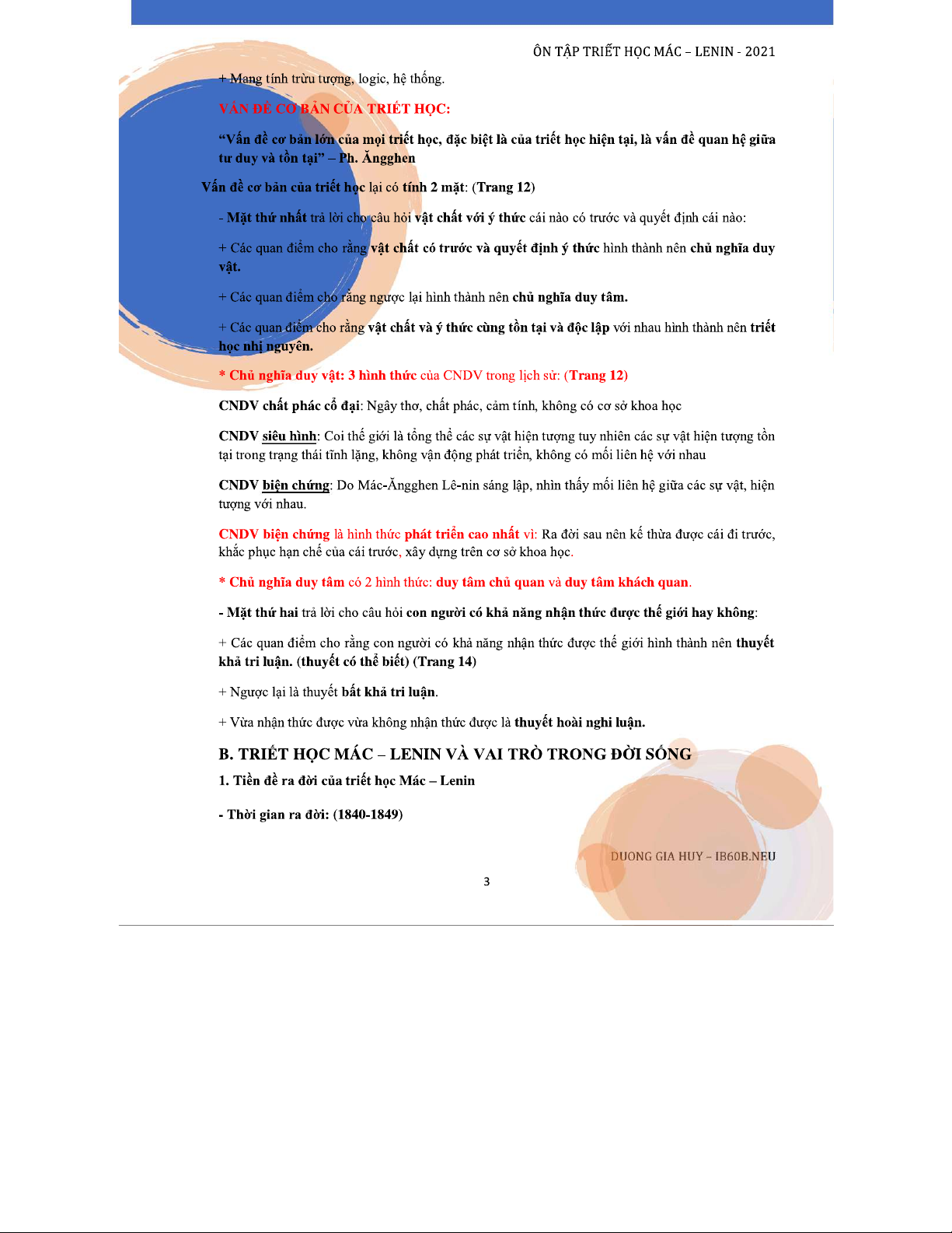 Triết học Mác - Lenin và Các Khái Niệm Cơ Bản - IB60B.NEU