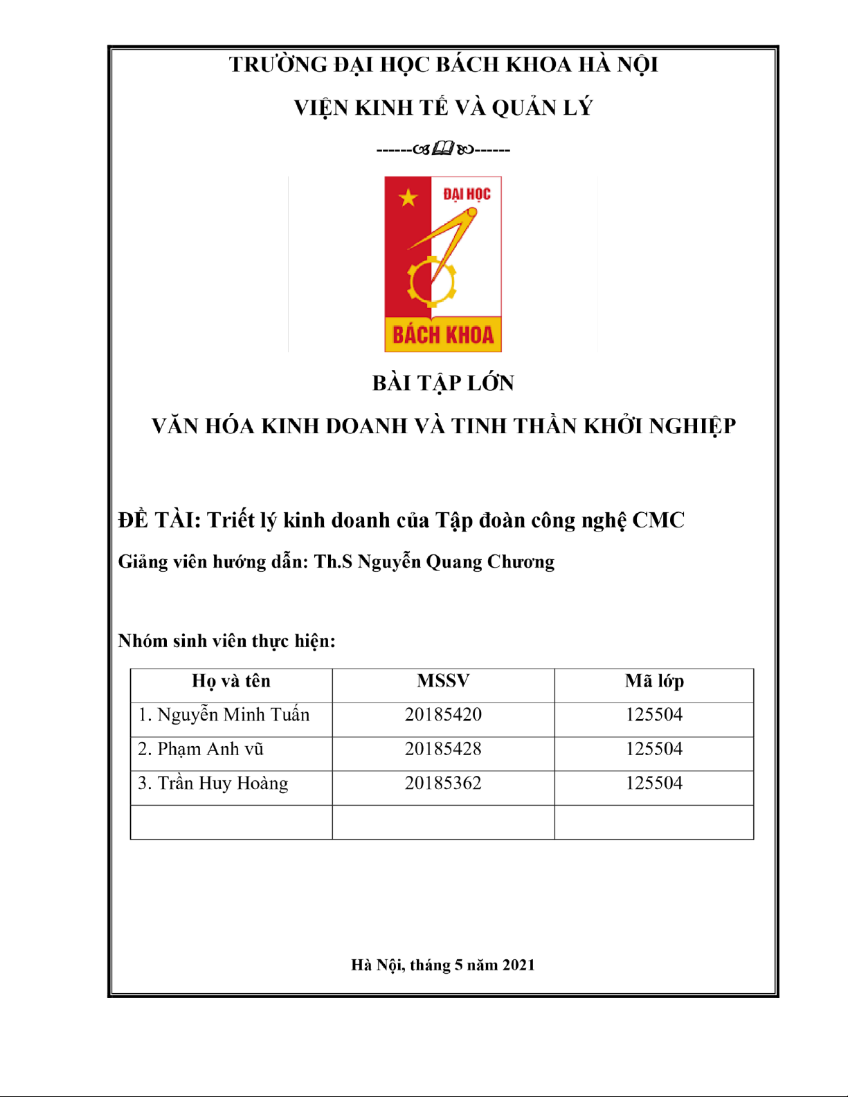 doanh khá bài bản, nên chúng em đã lựa chọn đề tài: “Triết lý kinh doanh của Tập đoàn công nghệ CMC”. lOMoAR cPSD| 61622878 NỘI DUNG