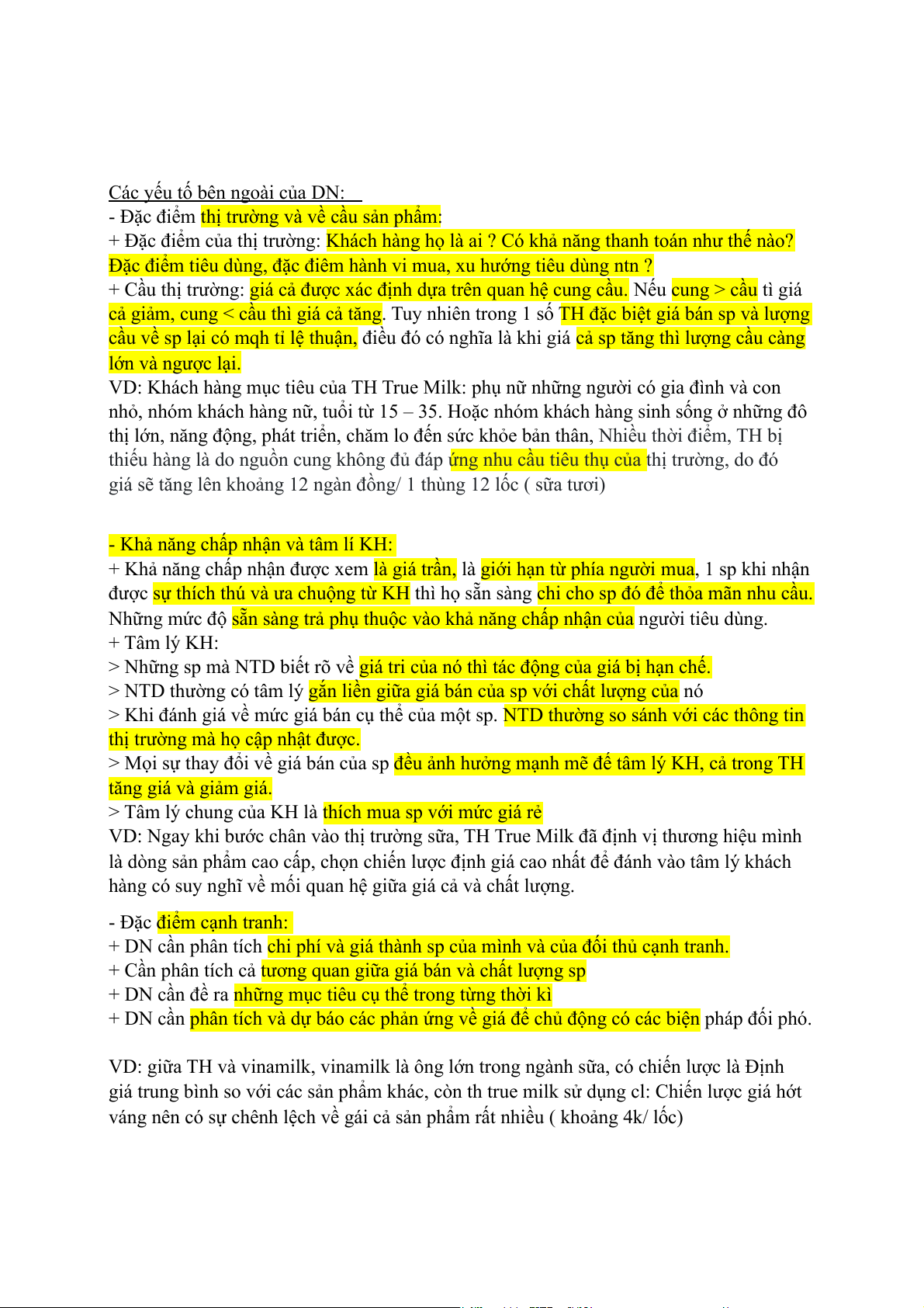 + DN cần phân tích chi phí và giá thành sp của mình và của đối thủ cạnh tranh.