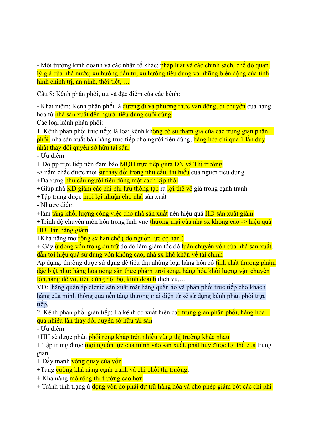 Câu 8: Kênh phân phối, ưu và đặc điểm của các kênh: