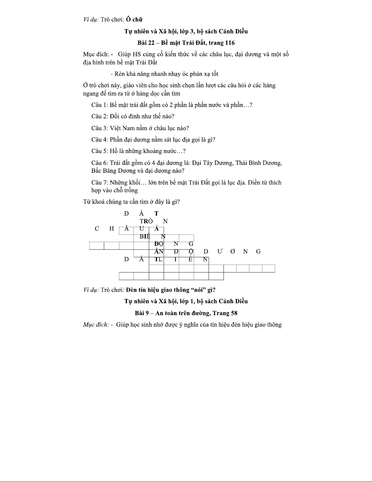 Trò chơi học tập: Ô chữ về Bề mặt Trái Đất, TN & XH lớp 3, Cánh Diều