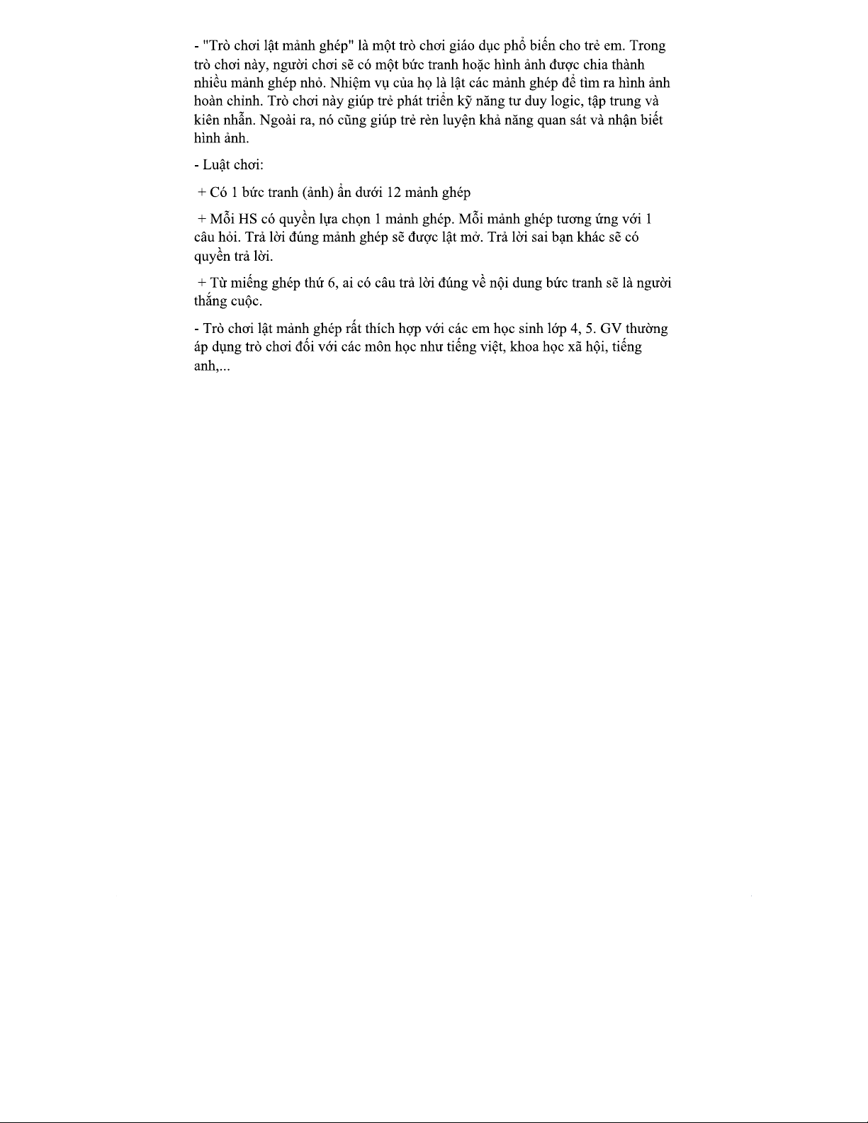 Trò chơi lật mảnh ghép - Hướng dẫn cho HS lớp 4, 5