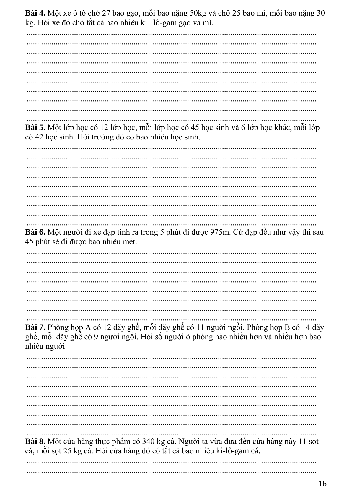 Bài 4. Một cửa hàng chuyển máy bằng ô tô. Lần đầu có 3 ô tô, mỗi ô tô chuyển được 16