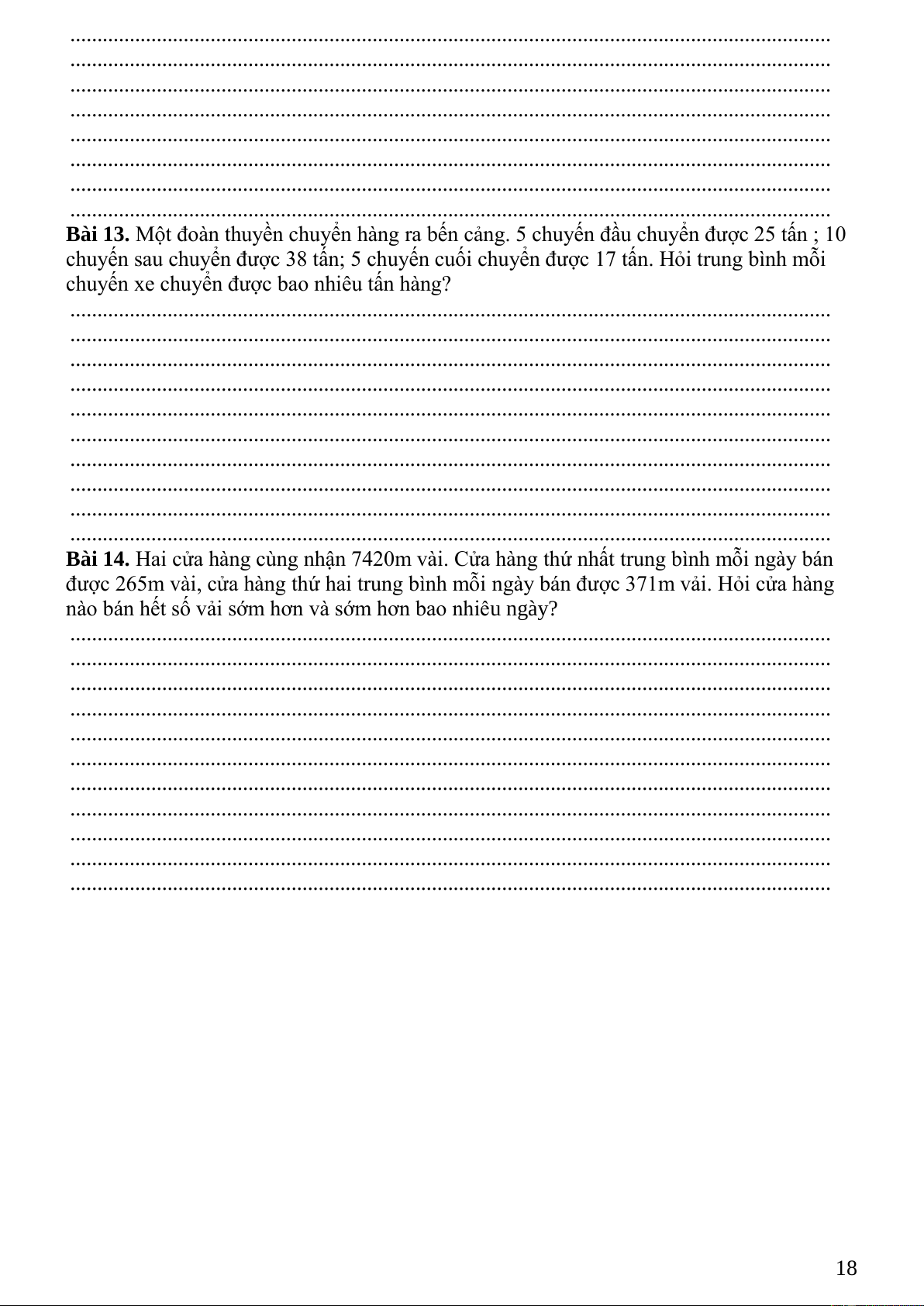 Bài 13. Một đoàn thuyền chuyển hàng ra bến cảng. 5 chuyến đầu chuyển được 25 tấn ; 10