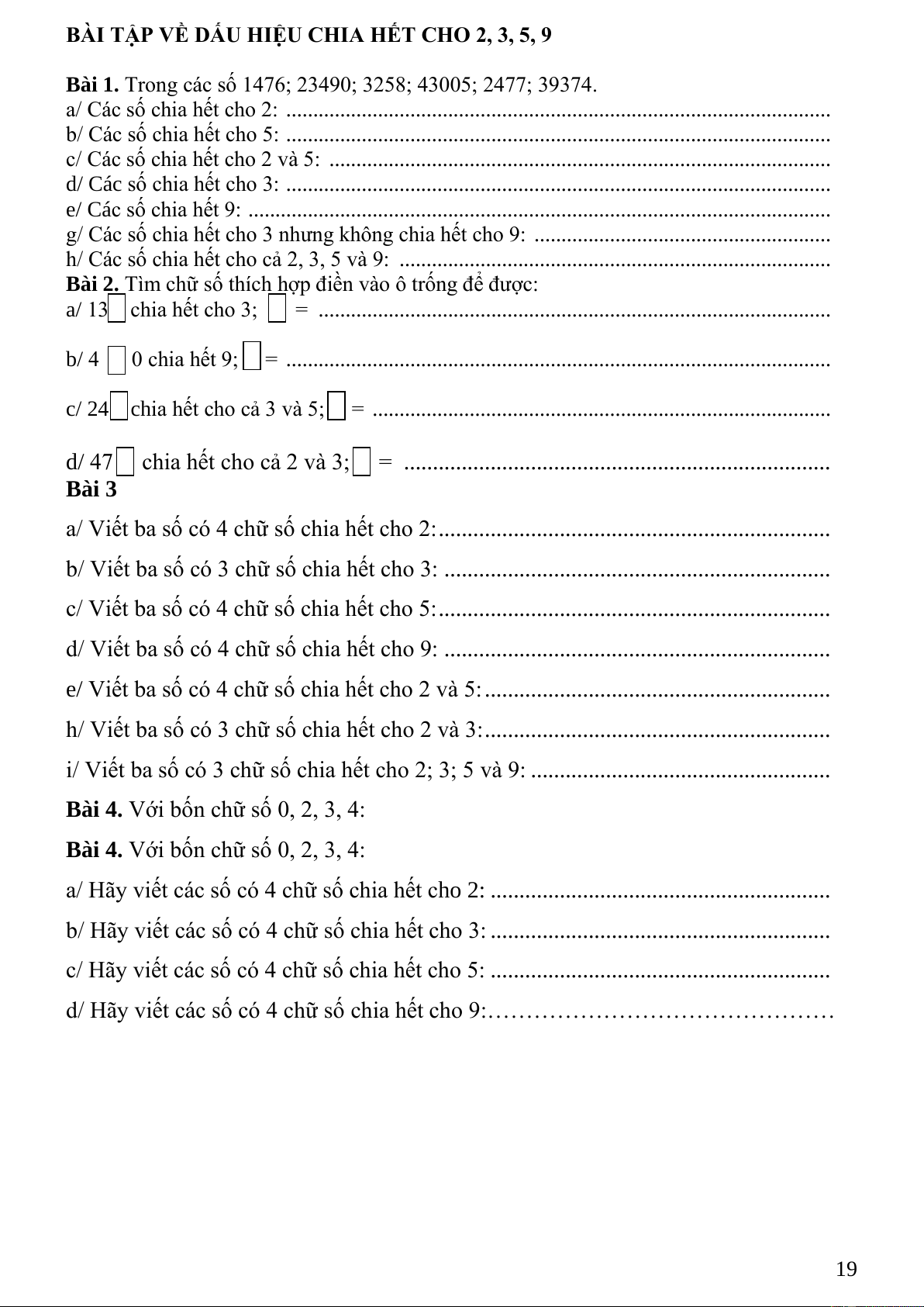 d/ Hãy viết các số có 4 chữ số chia hết cho 9:……………………………………… 19