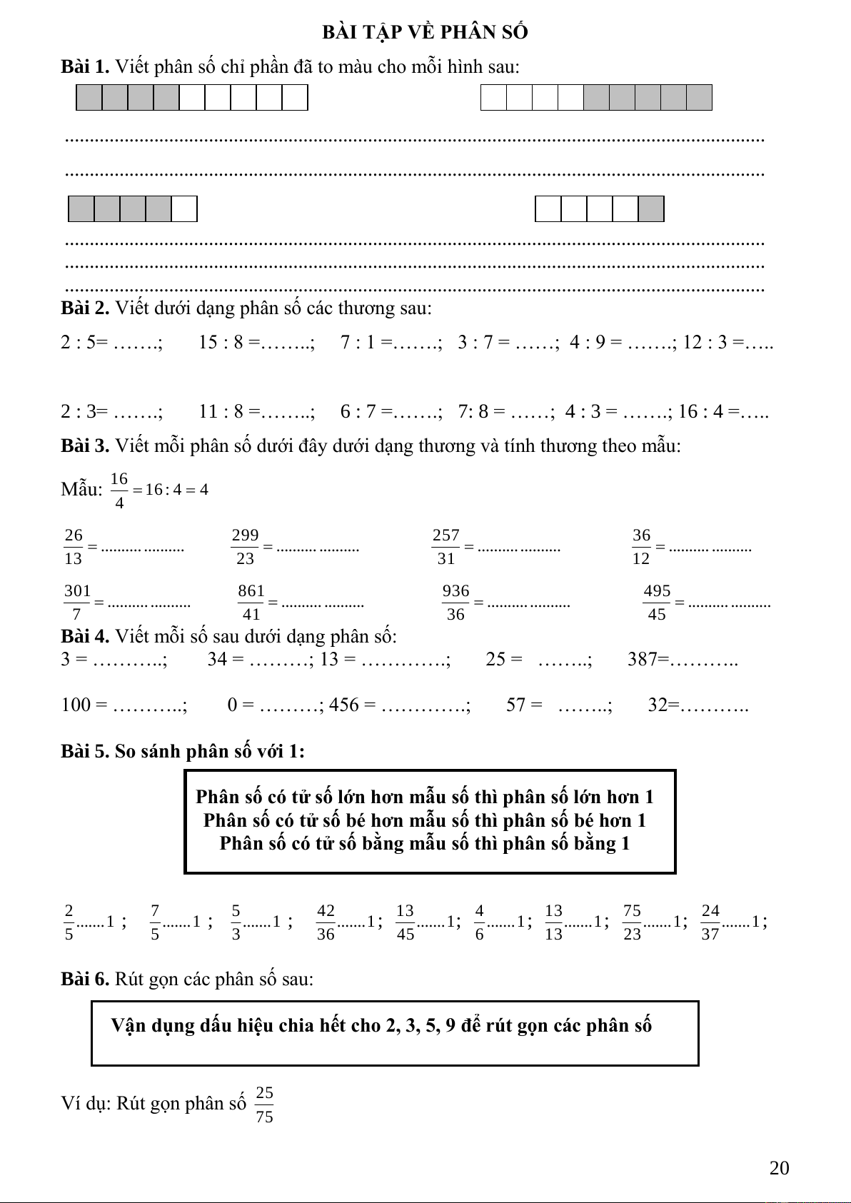 Bài 5. So sánh phân số với 1: