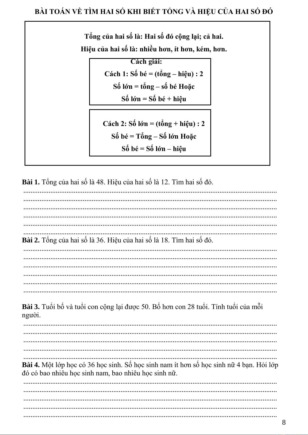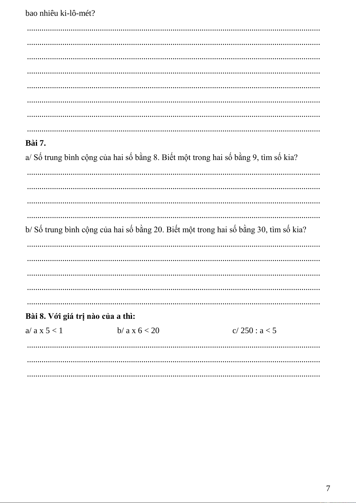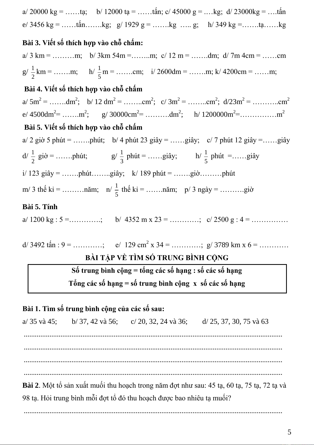 BÀI TẬP VỀ TÌM SỐ TRUNG BÌNH CỘNG
