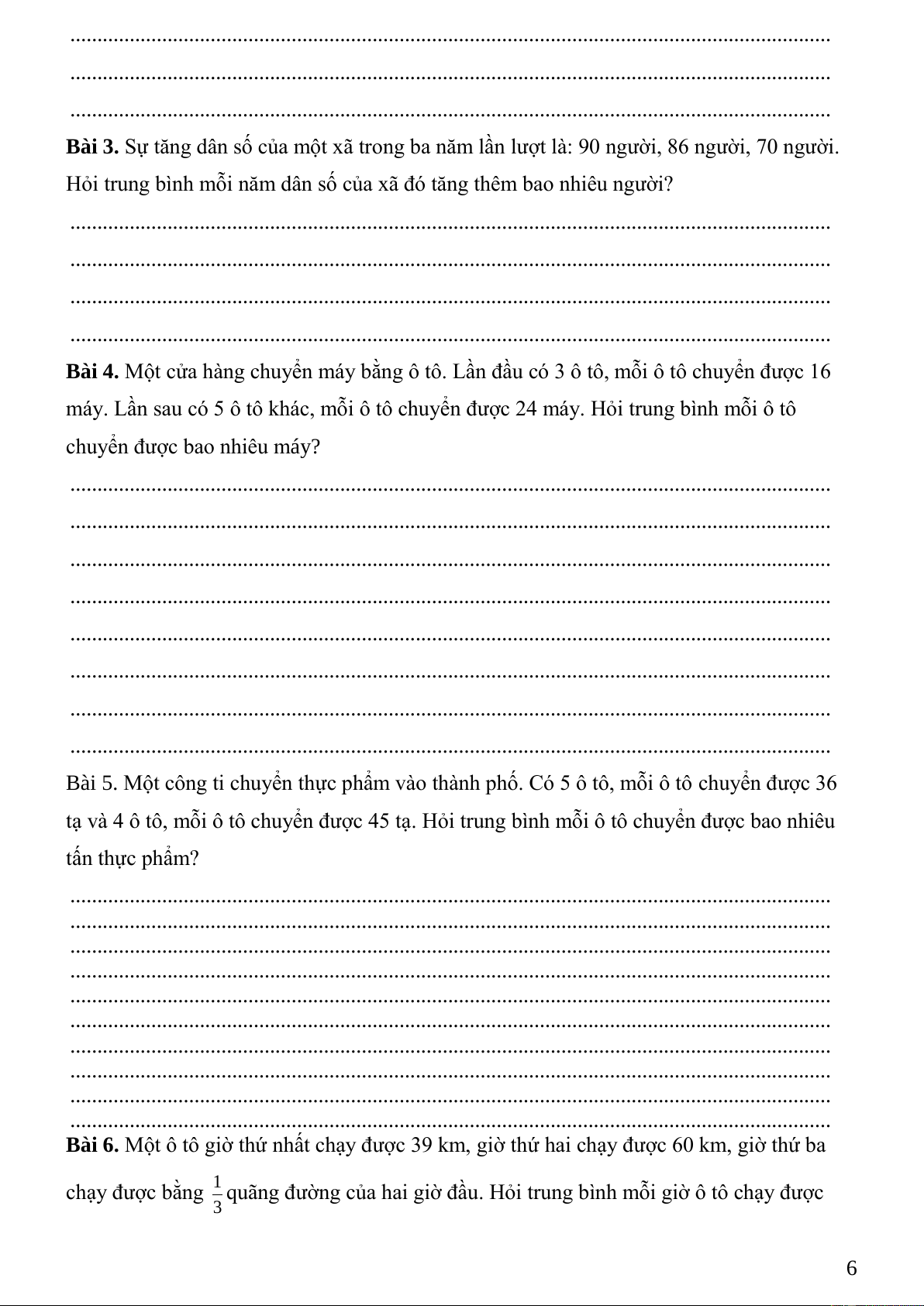 Bài 3. Sự tăng dân số của một xã trong ba năm lần lượt là: 90 người, 86 người, 70 người.
