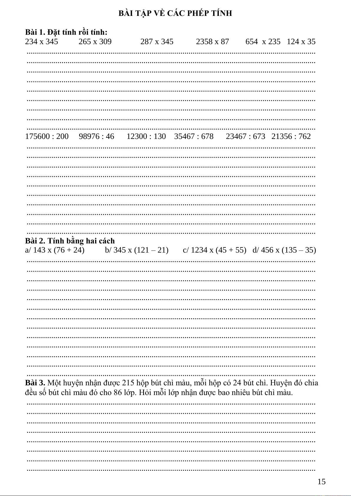Bài 3. Một huyện nhận được 215 hộp bút chì màu, mỗi hộp có 24 bút chì. Huyện đó chia