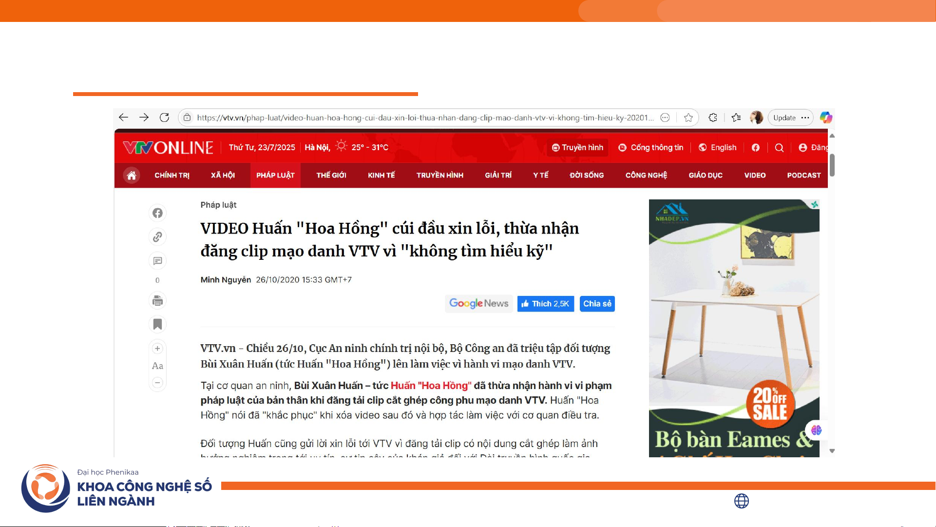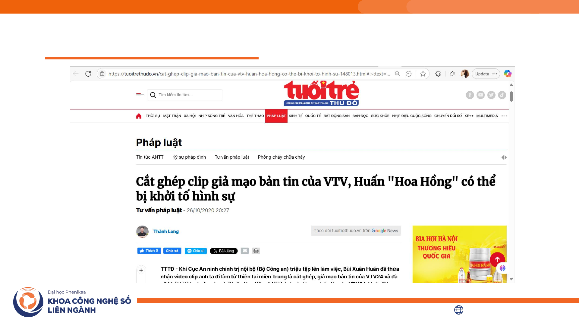 6.1 Vai trò của sự hiểu biết pháp luật, đạo đức với người làm truyền thông Ảnh chụp màn hình fanpage M.C.O. (Nguồn: Dân trí) fidt.phenikaa-uni.edu.vn | 11