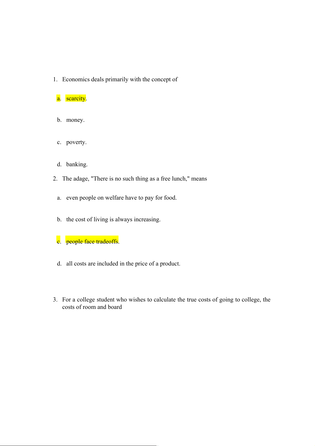 1. Economics deals primarily with the concept of a. scarcity. b. money. c. poverty. d. banking.