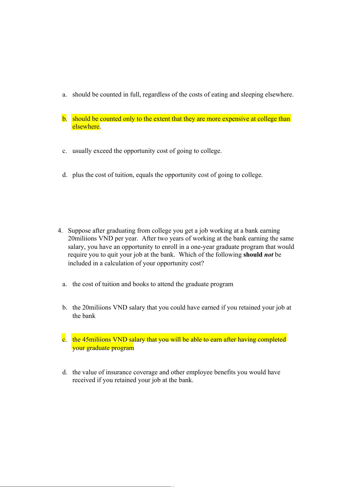 there may exist other costs (implicit costs- foregone opportunities.) that are larger than tuition. 5.