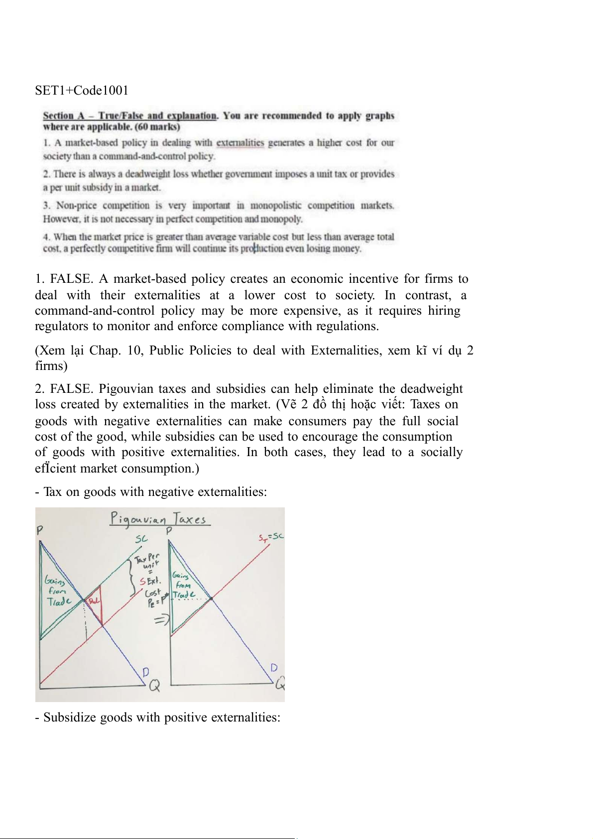 2. FALSE. Pigouvian taxes and subsidies can help eliminate the deadweight