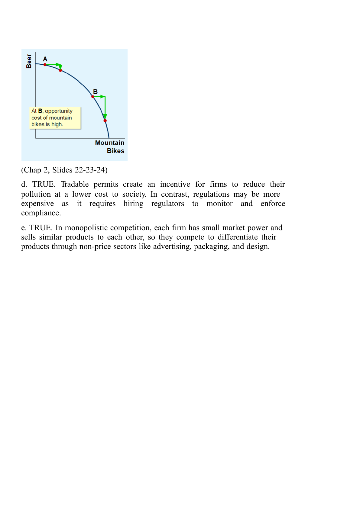 c. TRUE. In a bowed outward PPF, as production expands, the opportunity