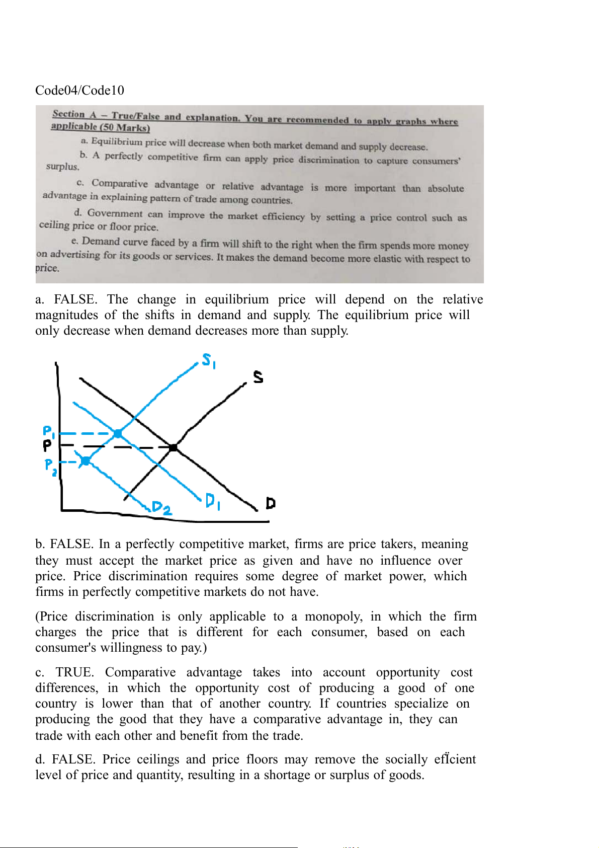 a. FALSE. The change in equilibrium price will depend on the relative