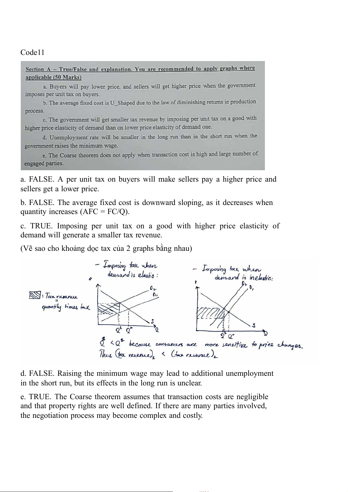 c. FALSE. Imposing per unit tax on a good with lower price elasticity of