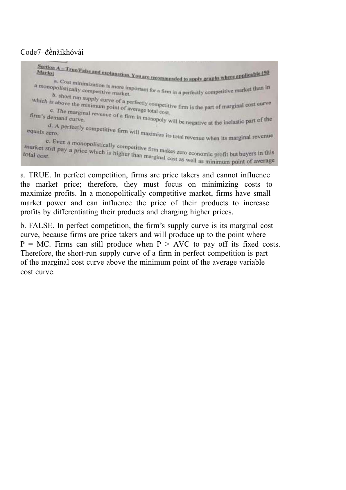 b. FALSE. In perfect competition, the firm’s supply curve is its marginal cost