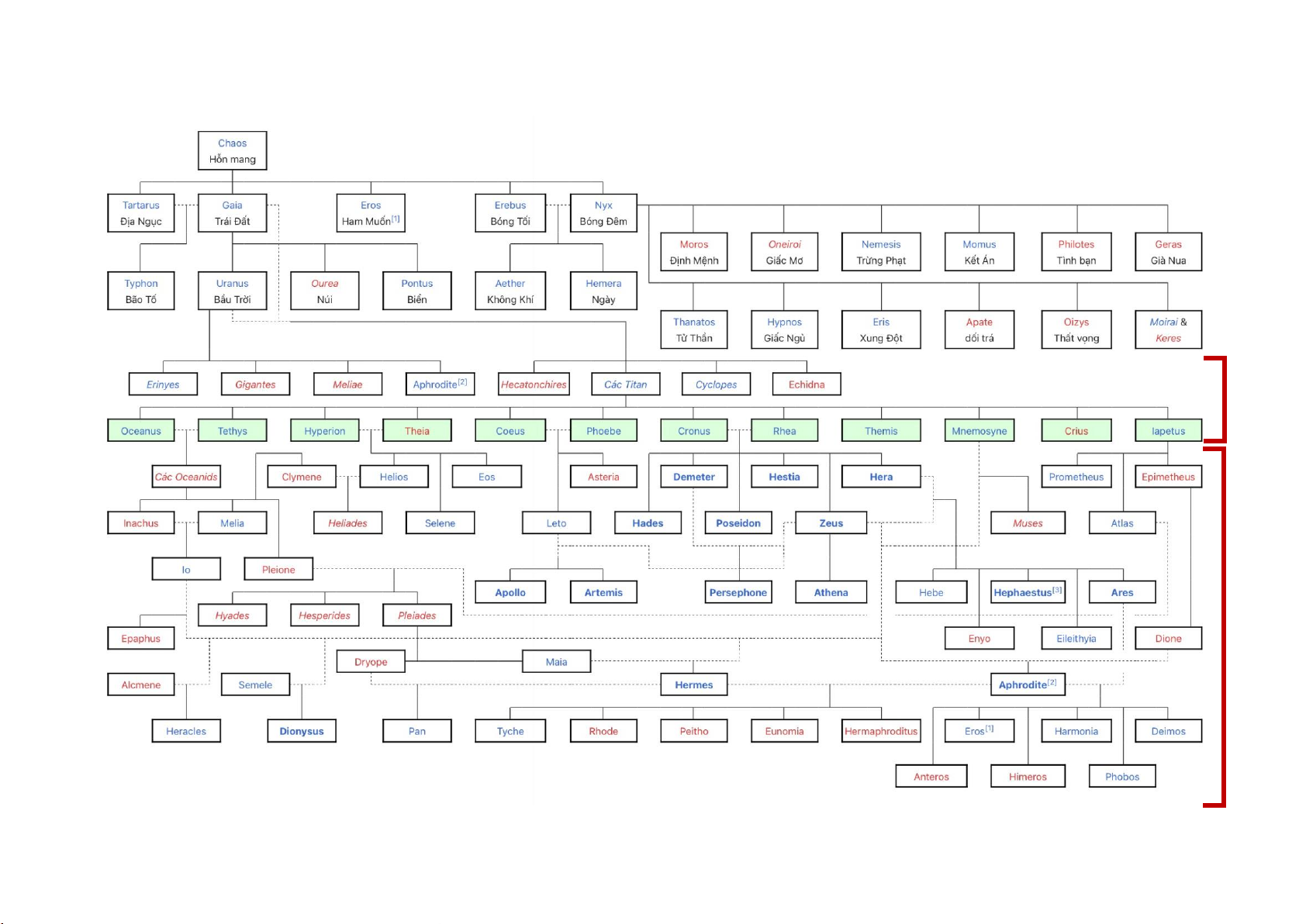 Phả hệ các vị thần từ thuở khai thiên lập địa Thế hệ Titan Thế hệ Olimpe